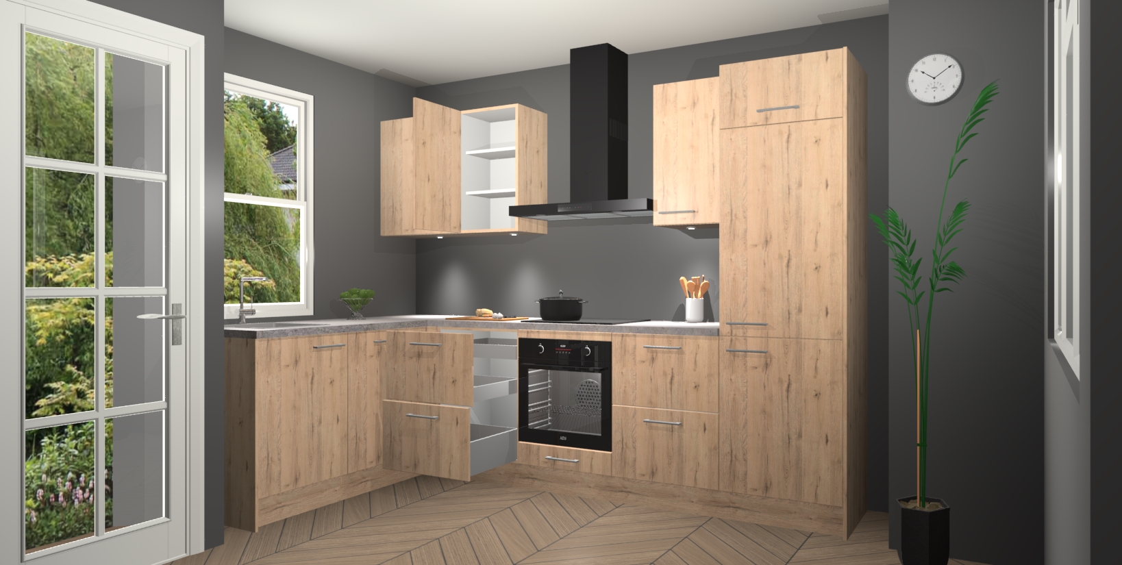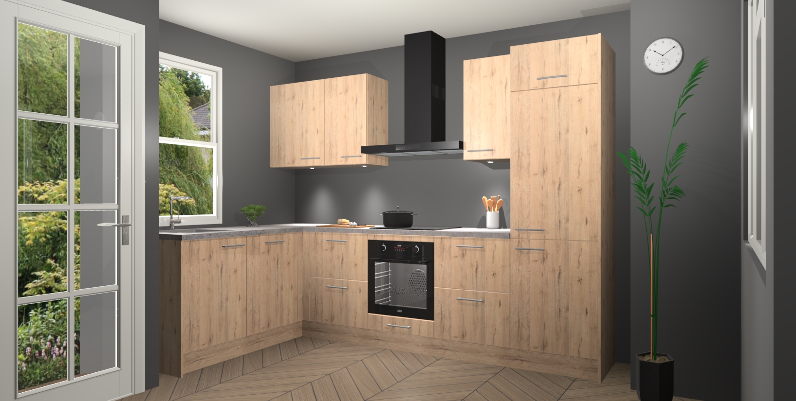 Bent u op zoek naar een strakke, moderne hoekkeuken die uw huis oppept en een moderne uitstraling geeft? Kijk dan niet verder dan de madera natuur keuken Beijing. Deze verbluffende hoekkeuken tilt hedendaags design naar een hoger niveau. Qua stijl is deze chique hoekkeuken voorzien van madera natuur accenten, om een strakke maar opvallende look te creëren. De binnenkant van de kasten is afgewerkt in dezelfde prachtige madera natuur kleur voor extra esthetische aantrekkingskracht.