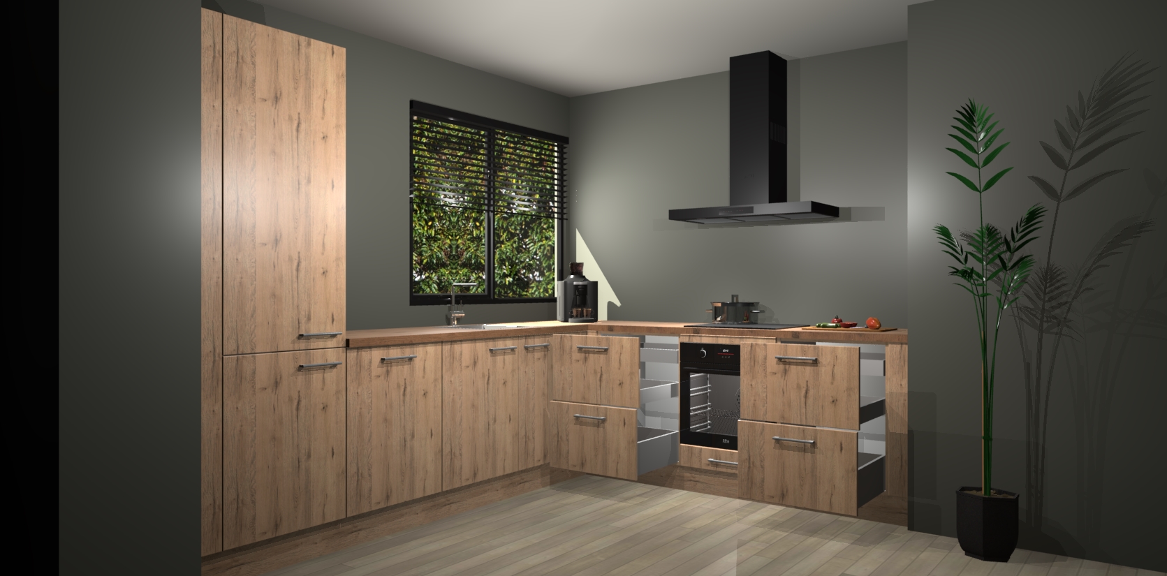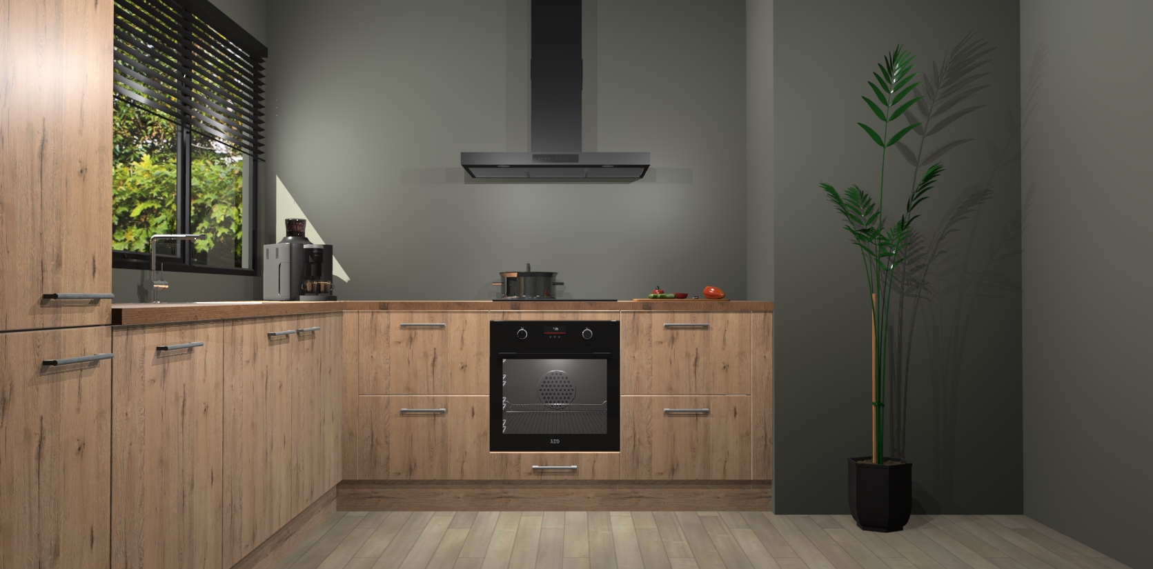Met een modern, tijdloos design en ruime opslagruimte, zult u zich in no-time thuis voelen in uw nieuwe keuken. Uw leven wordt eenvoudiger met de soft-close deuren die voor het ultieme stille comfort zorgen - geen geluid dat u stoort terwijl u kookt. Ook is de keuken voorzien van 5 ingebouwde apparaten: een oven, inductie kookplaat, afzuigkap, vaatwasser en koelkast. Deze kunnen gemakkelijk na bestelling worden bijgewerkt naar AEG - waardoor uw luxe ervaring compleet is.