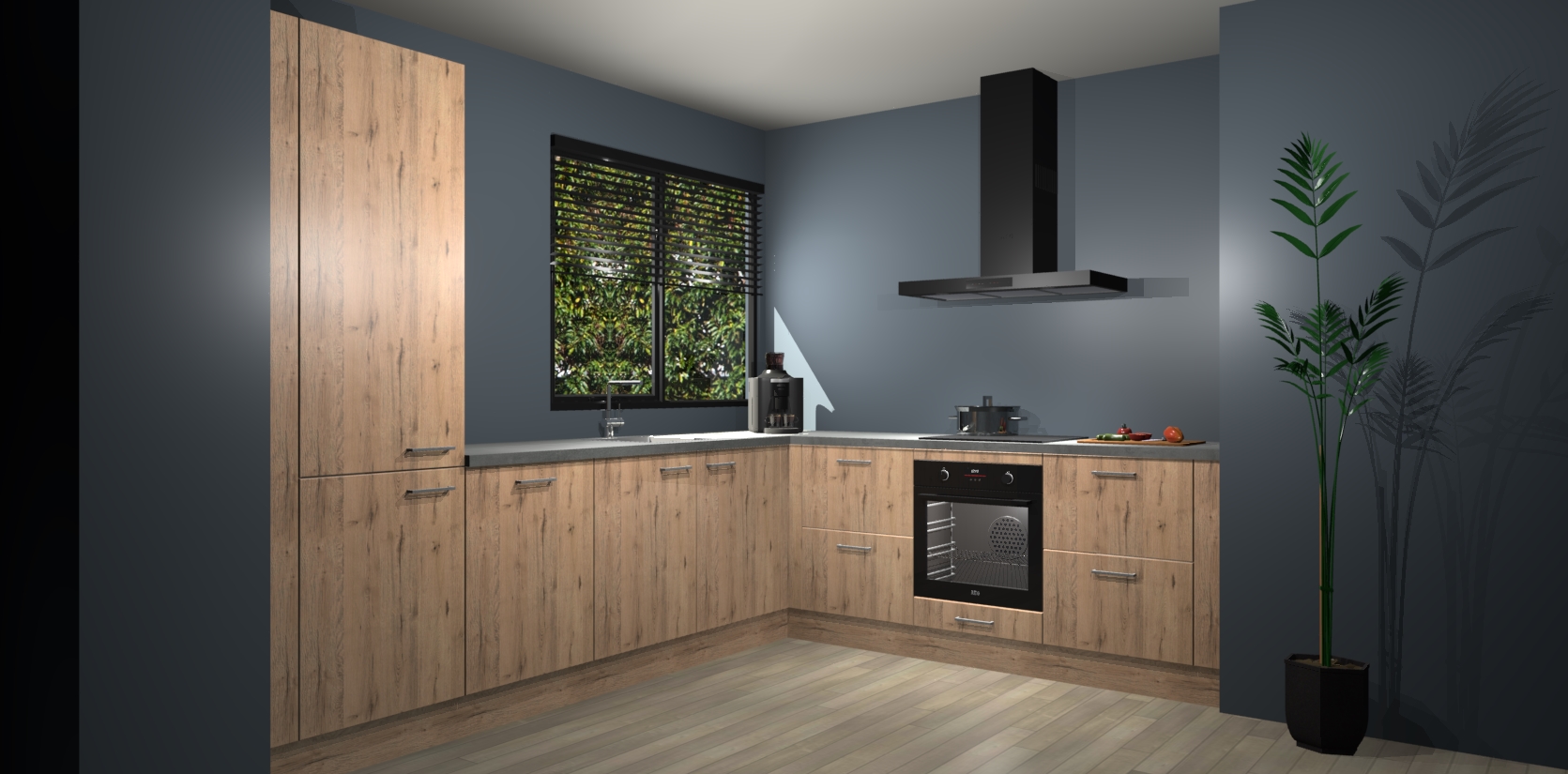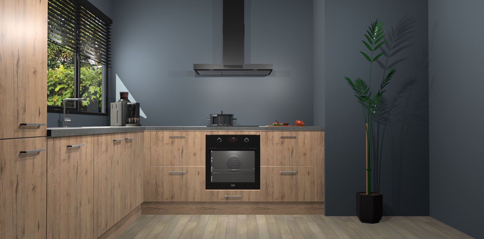 Met een modern, tijdloos design en ruime opslagruimte, zult u zich in no-time thuis voelen in uw nieuwe keuken. Uw leven wordt eenvoudiger met de soft-close deuren die voor het ultieme stille comfort zorgen - geen geluid dat u stoort terwijl u kookt. Ook is de keuken voorzien van 5 ingebouwde apparaten: een oven, inductie kookplaat, afzuigkap, vaatwasser en koelkast. Deze kunnen gemakkelijk na bestelling worden bijgewerkt naar AEG - waardoor uw luxe ervaring compleet is.