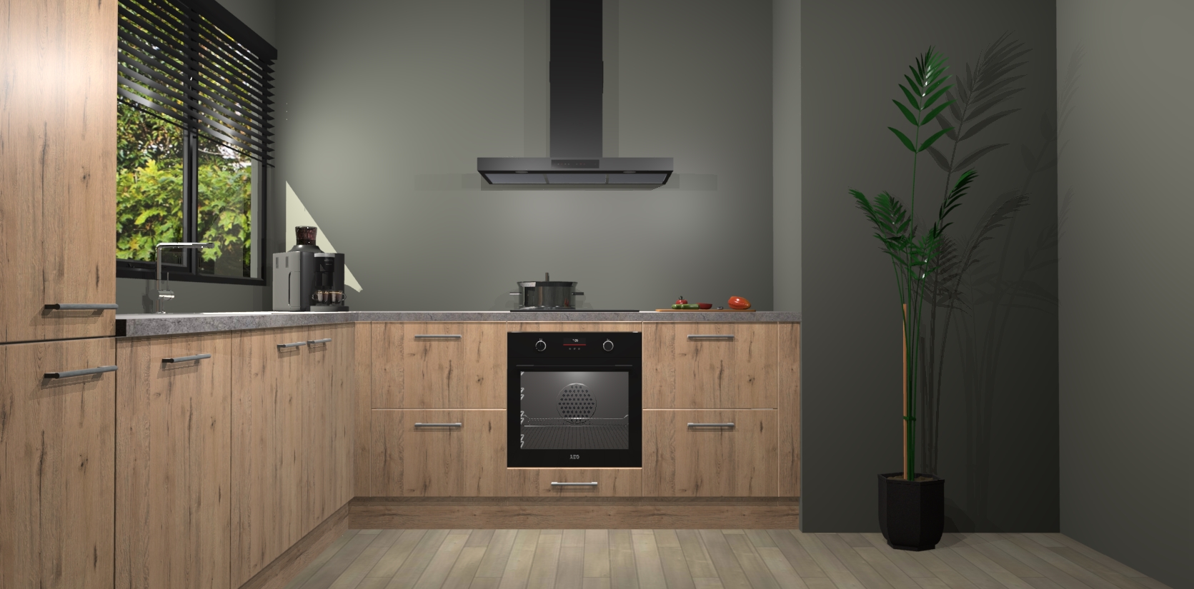 Met een modern, tijdloos design en ruime opslagruimte, zult u zich in no-time thuis voelen in uw nieuwe keuken. Uw leven wordt eenvoudiger met de soft-close deuren die voor het ultieme stille comfort zorgen - geen geluid dat u stoort terwijl u kookt. Ook is de keuken voorzien van 5 ingebouwde apparaten: een oven, inductie kookplaat, afzuigkap, vaatwasser en koelkast. Deze kunnen gemakkelijk na bestelling worden bijgewerkt naar AEG - waardoor uw luxe ervaring compleet is.