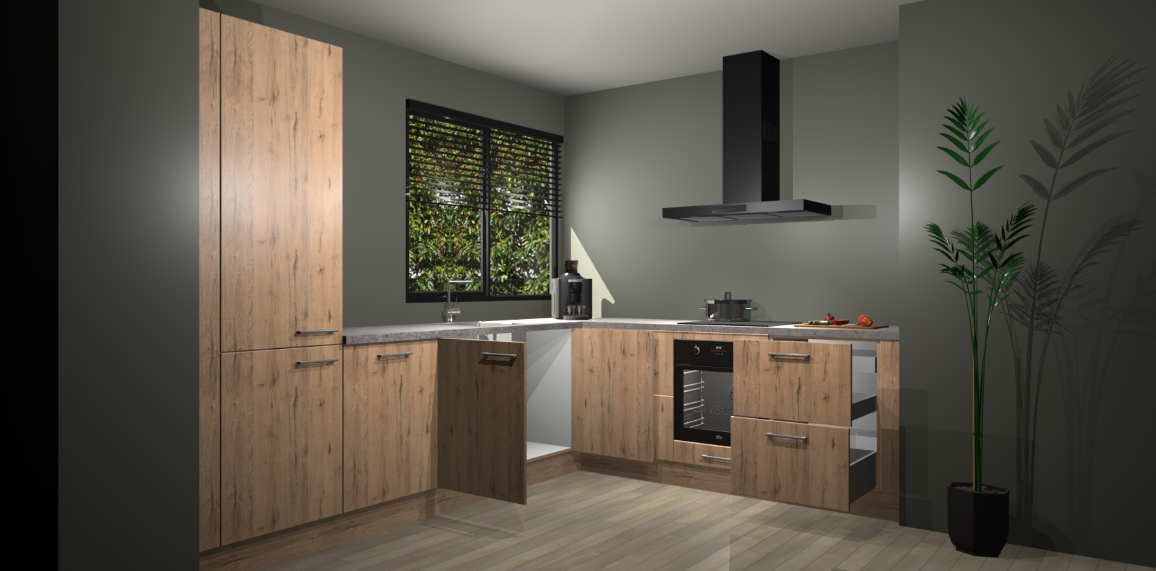 Wij presenteren de revolutie in keukens: de Madera Natuur keuken Benidorm. Met modern design, een tijdloos uiterlijk en kasten die al voor gemonteerd worden geleverd, laat deze stijlvolle keuken uw kookervaring op een hele nieuwe manier transformeren.