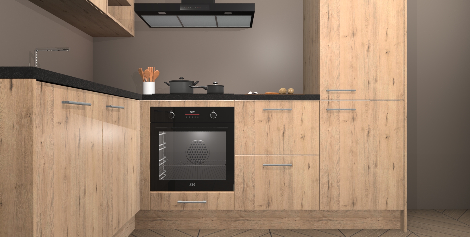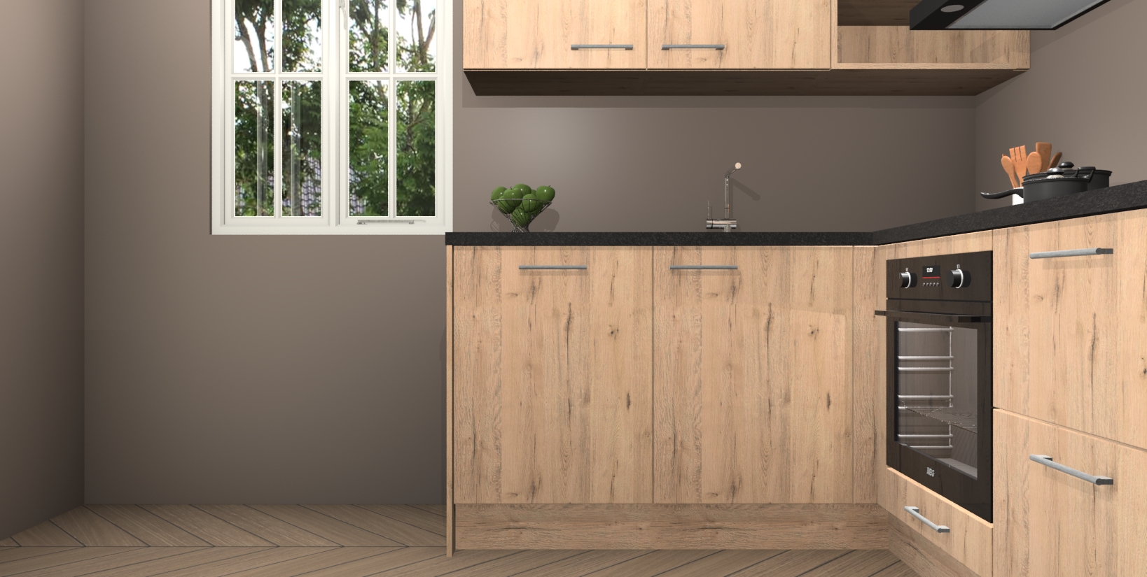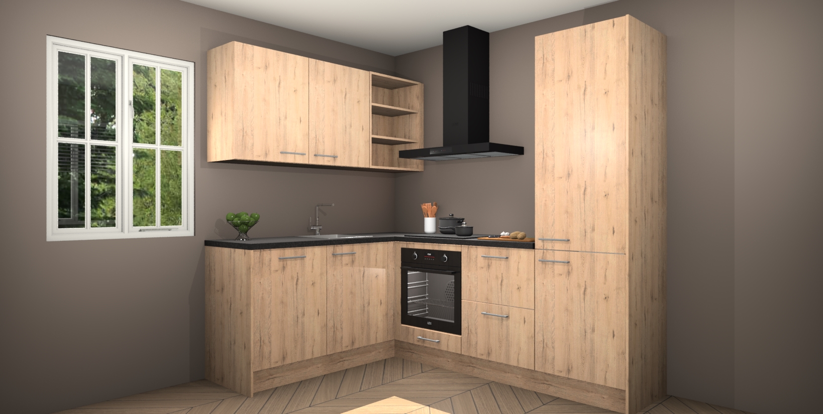 Maak kennis met de Madera Natuur keuken Boekarest, een moderne hoekkeuken waar al uw vrienden en familie jaloers op zullen zijn! Het verbluffende mooie ontwerp past in elk interieur en is een ideale keuze voor wie op zoek is naar een klassieke, maar verfijnde look.