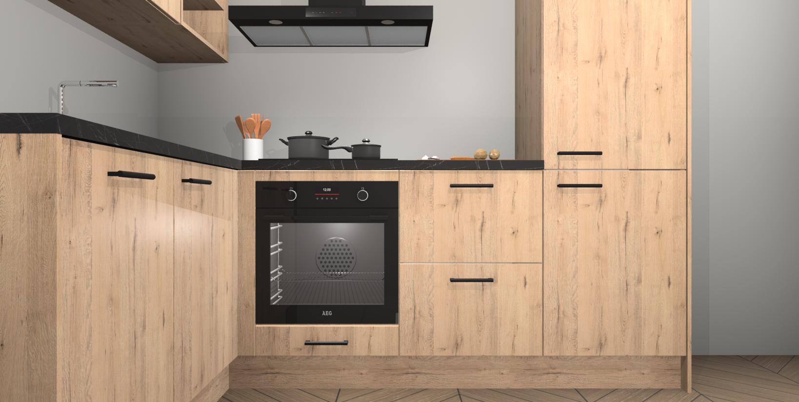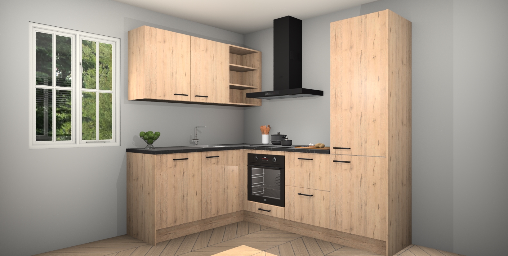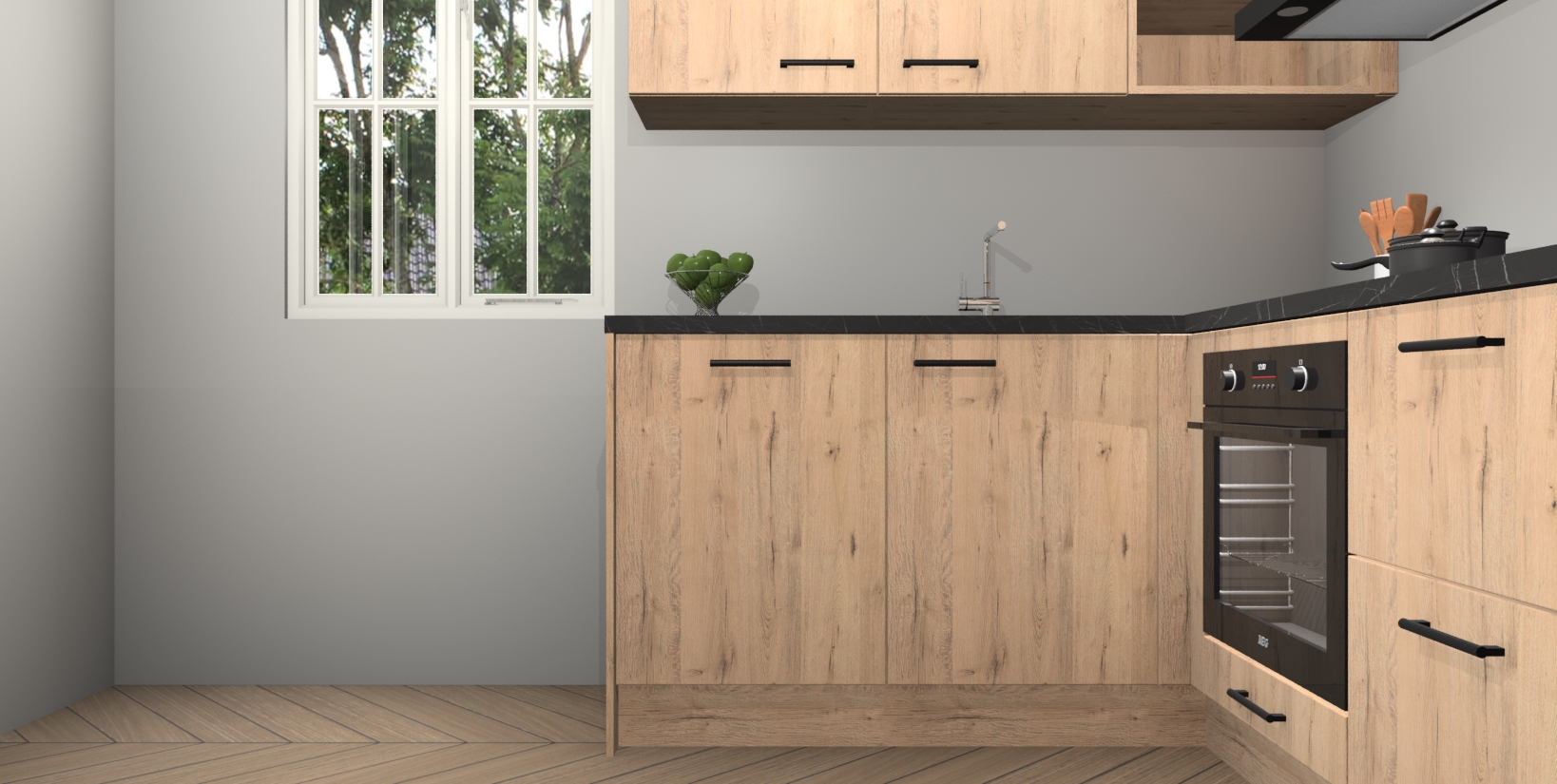 Maak kennis met de Madera Natuur keuken Boekarest, een moderne hoekkeuken waar al uw vrienden en familie jaloers op zullen zijn! Het verbluffende mooie ontwerp past in elk interieur en is een ideale keuze voor wie op zoek is naar een klassieke, maar verfijnde look.