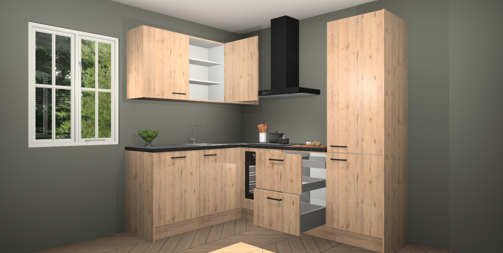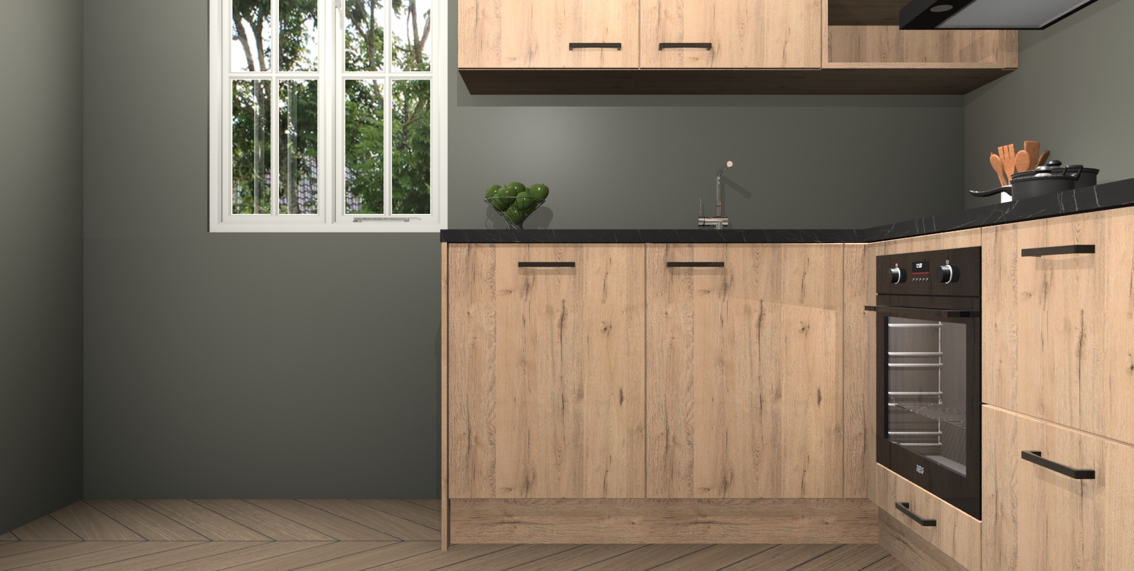 Maak kennis met de Madera Natuur keuken Boekarest, een moderne hoekkeuken waar al uw vrienden en familie jaloers op zullen zijn! Het verbluffende mooie ontwerp past in elk interieur en is een ideale keuze voor wie op zoek is naar een klassieke, maar verfijnde look.