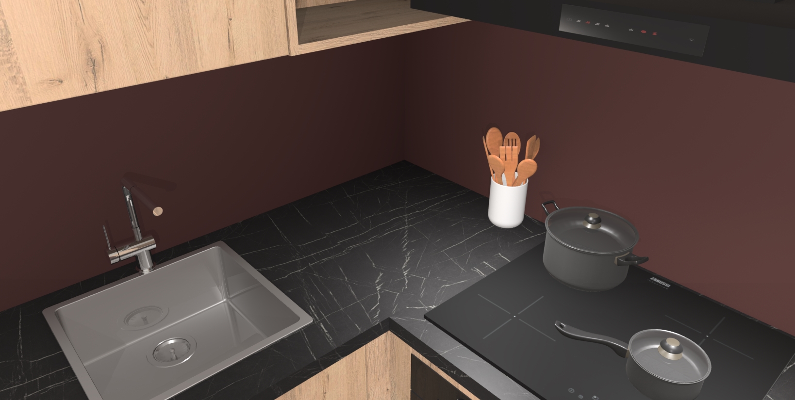 - Uitsparing van kookplaat, spoelbak en kraan dient u zelf te verzorgen.