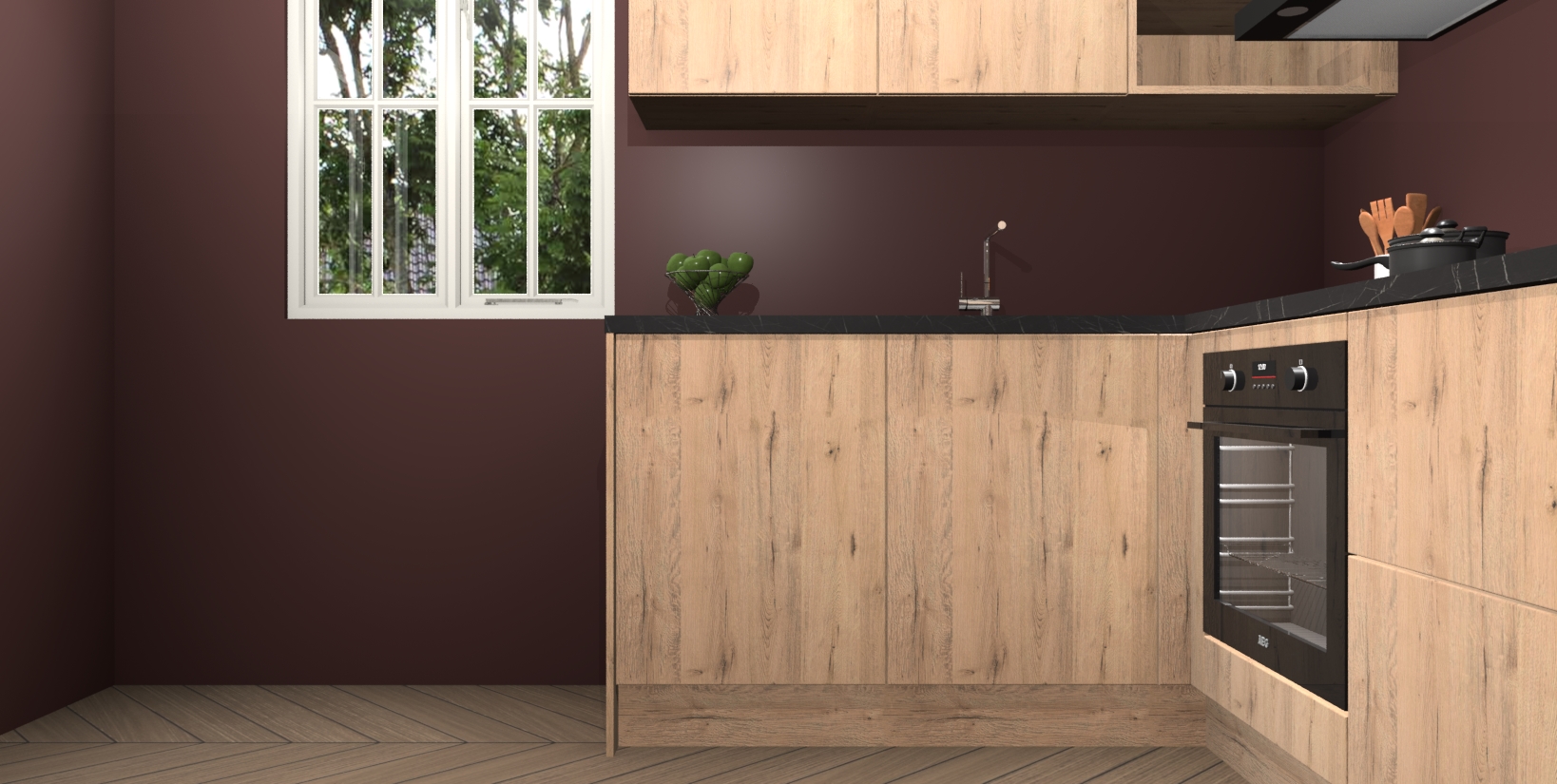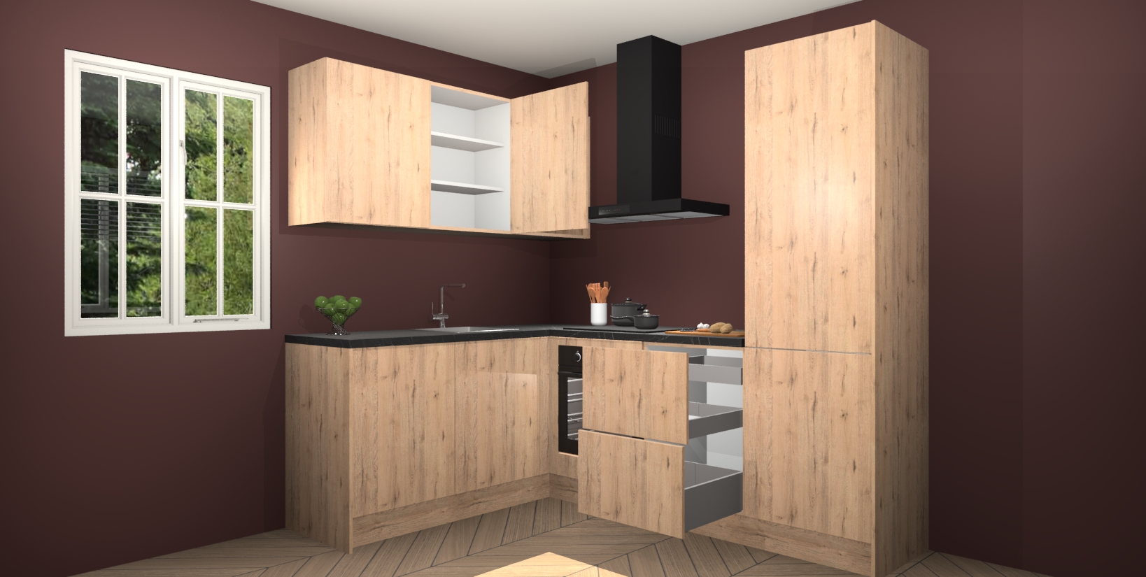 Maak kennis met de Madera Natuur keuken Boekarest, een moderne hoekkeuken waar al uw vrienden en familie jaloers op zullen zijn! Het verbluffende mooie ontwerp past in elk interieur en is een ideale keuze voor wie op zoek is naar een klassieke, maar verfijnde look.