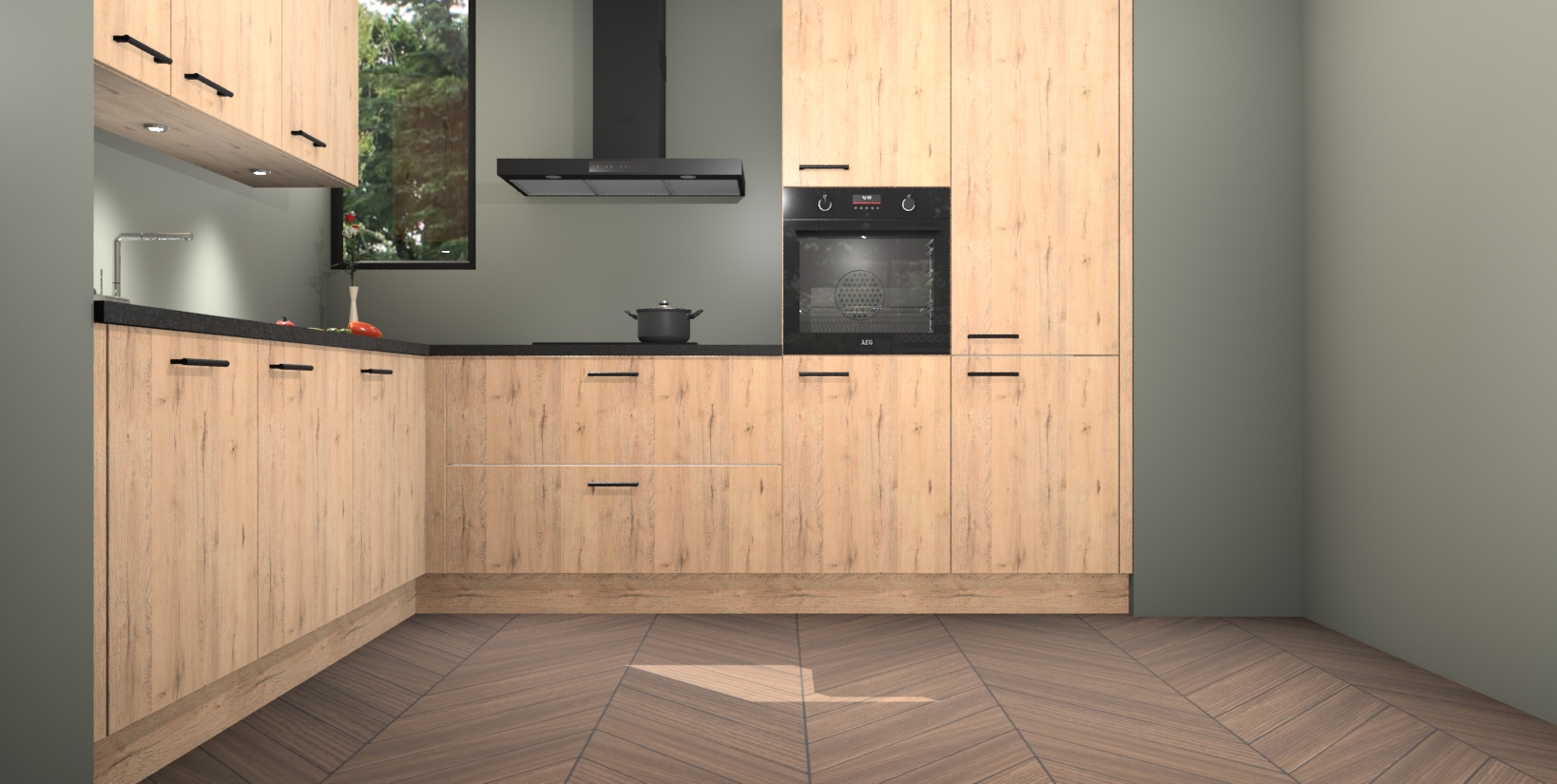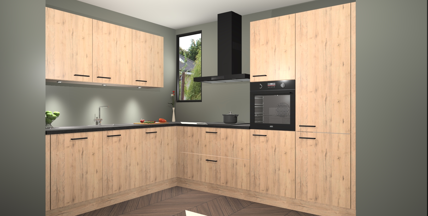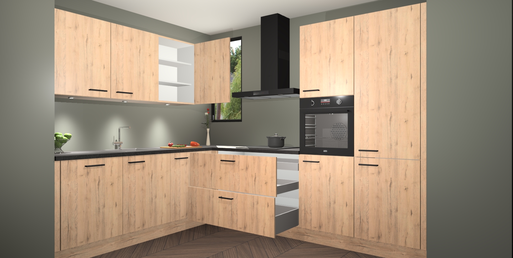 De ruime opbergruimte van dit model maakt het bereiden van voedsel en het gebruik van apparaten snel en gemakkelijk. Het beste van alles is dat het wordt geleverd met vijf inbouwapparaten: een oven, inductiekookplaat, afzuigkap, vaatwasser en koelkast - die allemaal gemakkelijk kunnen worden opgewaardeerd naar AEG na aankoop. Wat de gemaksfactor nog groter maakt, is het feit dat alle cabines voorgemonteerd worden geleverd, zodat u er meteen mee aan de slag kunt!