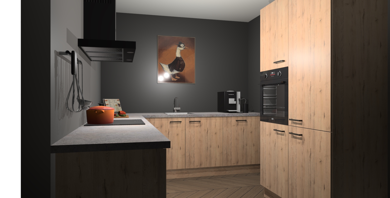Met een modern, tijdloos design en ruime opslagruimte, zult u zich in no-time thuis voelen in uw nieuwe keuken. Uw leven wordt eenvoudiger met de soft-close deuren die voor het ultieme stille comfort zorgen - geen geluid dat u stoort terwijl u kookt. Ook is de keuken voorzien van 5 ingebouwde apparaten: een oven, inductie kookplaat, afzuigkap, vaatwasser en koelkast. Deze kunnen gemakkelijk na bestelling worden bijgewerkt naar AEG - waardoor uw luxe ervaring compleet is.