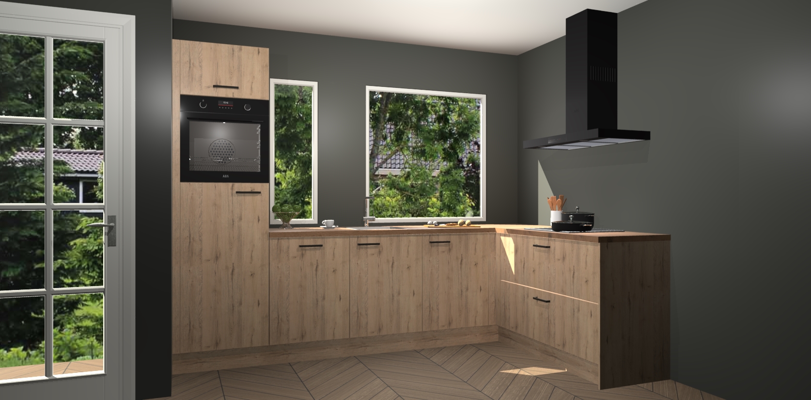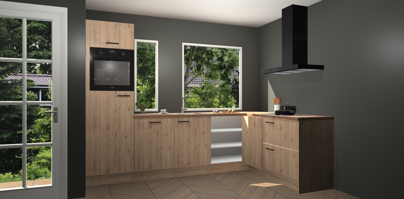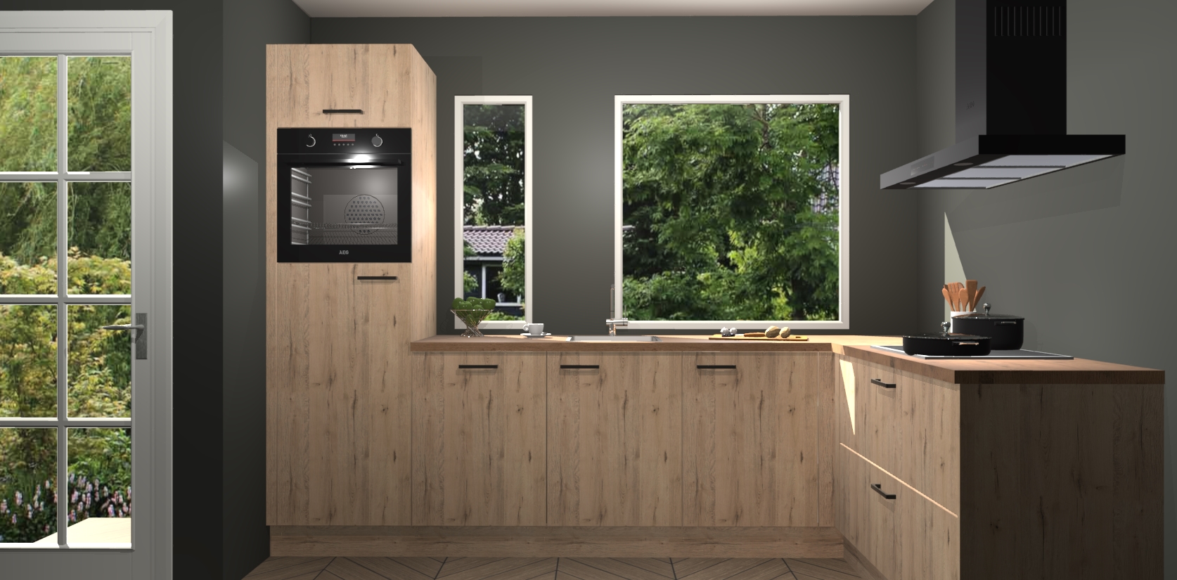 Deze complete keuken wordt geleverd met 5 inbouwapparaten: een oven, inductiekookplaat, afzuigkap, vaatwasser en koelkast. De toestellen kunnen na bestelling ook gemakkelijk worden opgewaardeerd naar AEG. Bovendien is elke deur in deze keuken voorzien van handige softclose technologie voor eenvoudig gebruik! Als een leuke toevoeging zit in deze keuken ook een carrousel, zo hoef je niet meer de hoek in duiken om iets te pakken.