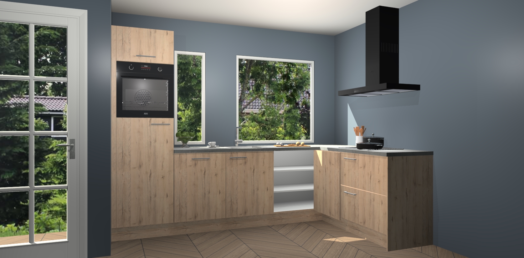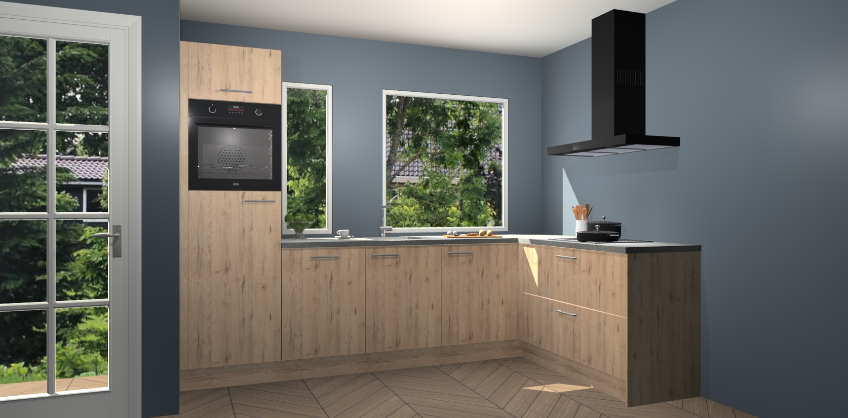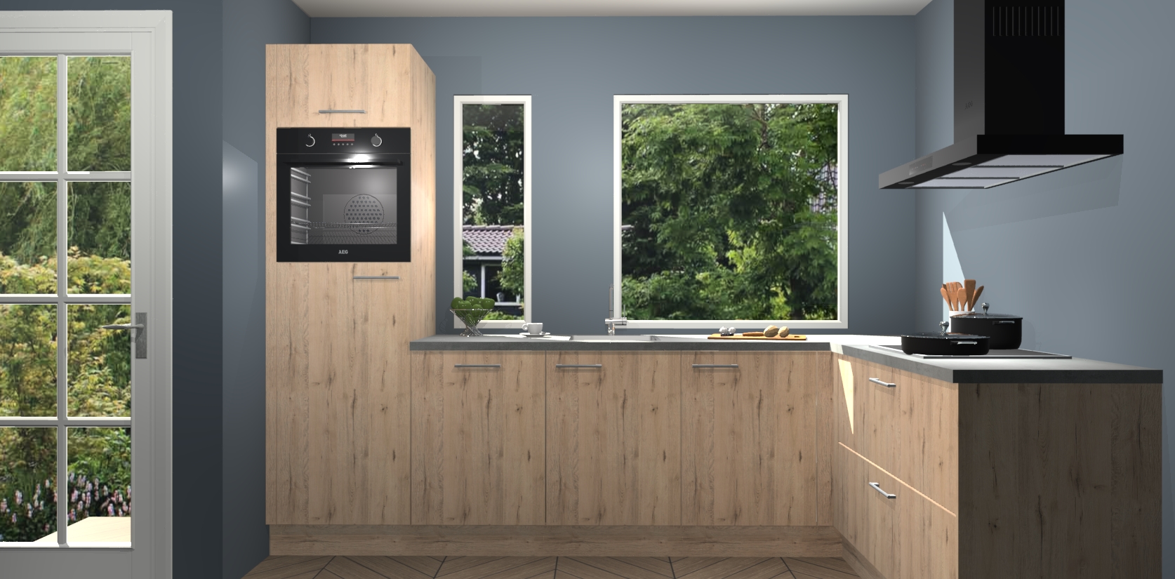 Deze complete keuken wordt geleverd met 5 inbouwapparaten: een oven, inductiekookplaat, afzuigkap, vaatwasser en koelkast. De toestellen kunnen na bestelling ook gemakkelijk worden opgewaardeerd naar AEG. Bovendien is elke deur in deze keuken voorzien van handige softclose technologie voor eenvoudig gebruik! Als een leuke toevoeging zit in deze keuken ook een carrousel, zo hoef je niet meer de hoek in duiken om iets te pakken.