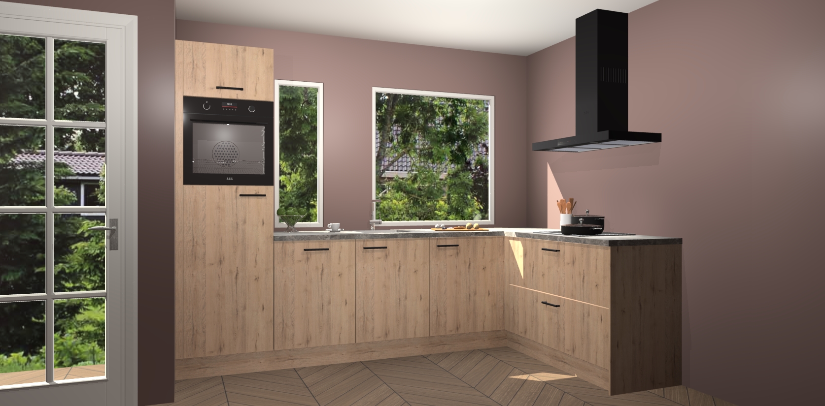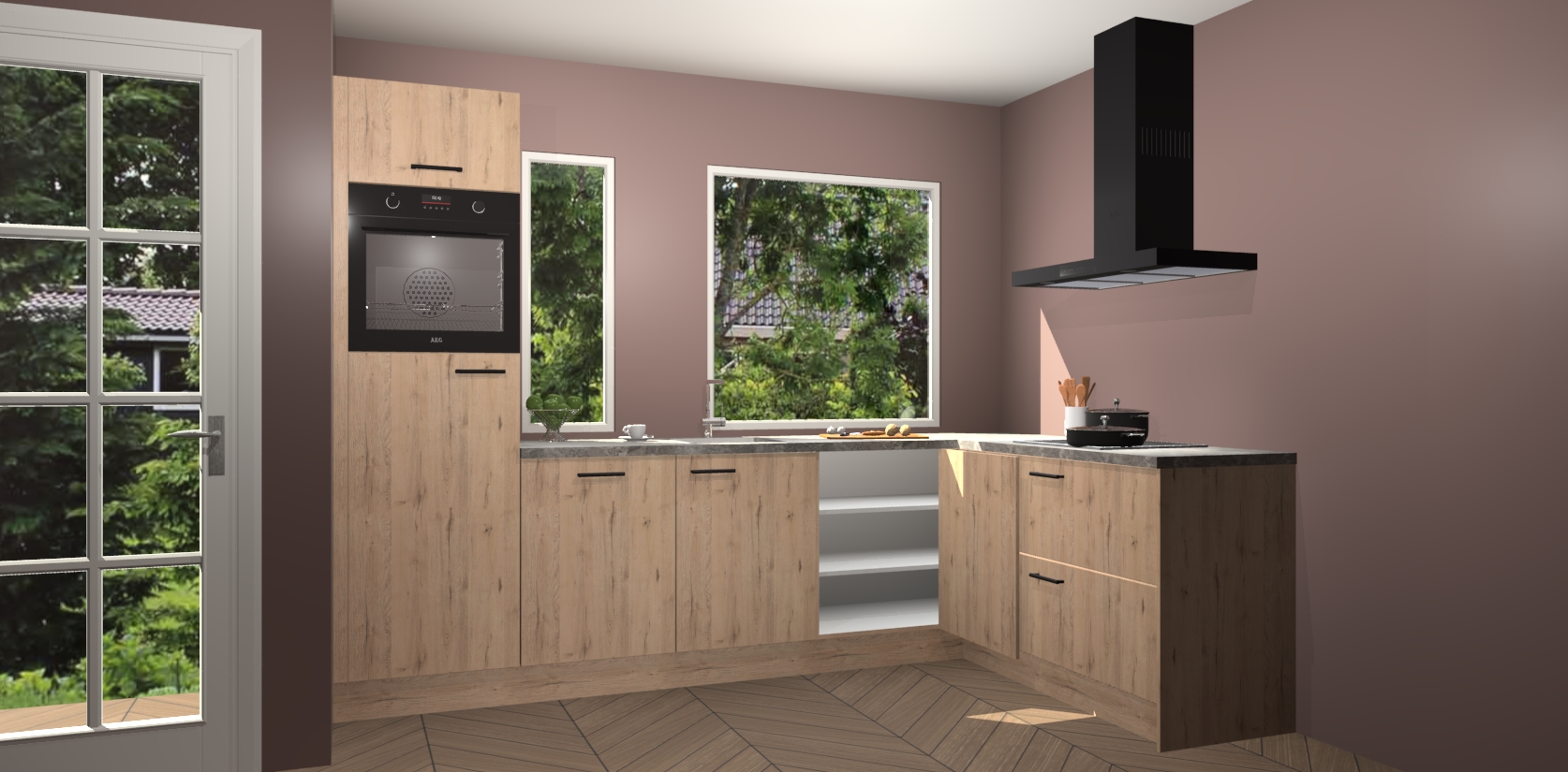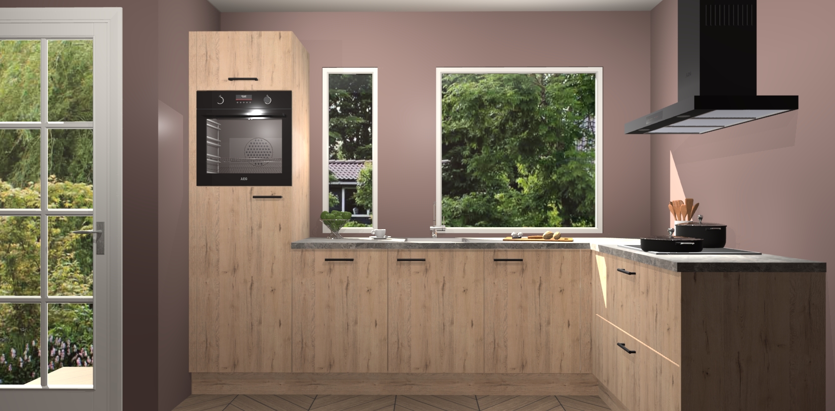 Deze complete keuken wordt geleverd met 5 inbouwapparaten: een oven, inductiekookplaat, afzuigkap, vaatwasser en koelkast. De toestellen kunnen na bestelling ook gemakkelijk worden opgewaardeerd naar AEG. Bovendien is elke deur in deze keuken voorzien van handige softclose technologie voor eenvoudig gebruik! Als een leuke toevoeging zit in deze keuken ook een carrousel, zo hoef je niet meer de hoek in duiken om iets te pakken.
