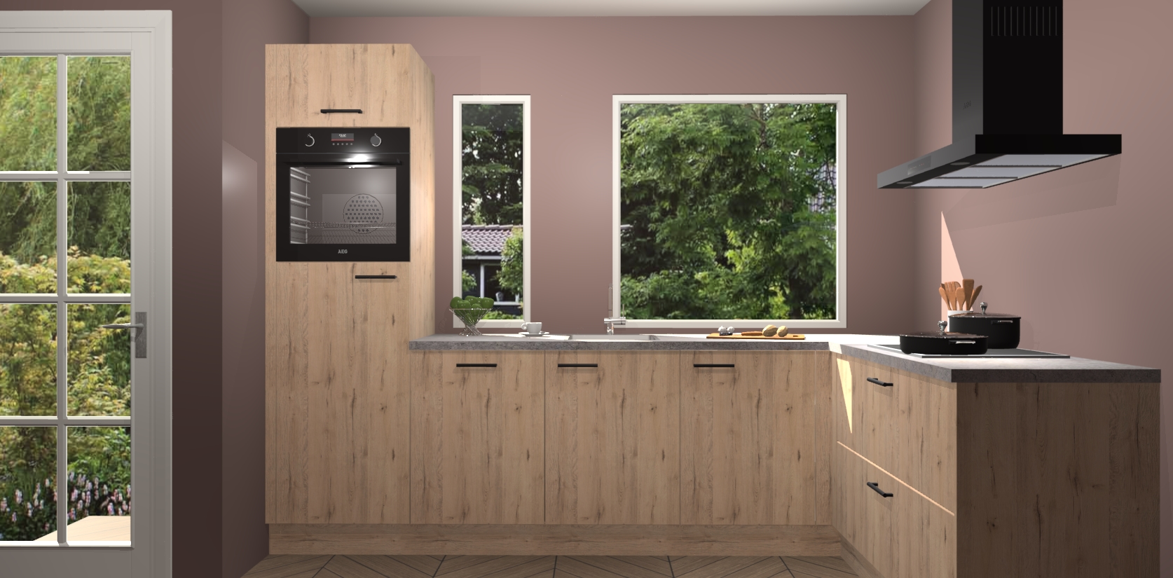 Deze complete keuken wordt geleverd met 5 inbouwapparaten: een oven, inductiekookplaat, afzuigkap, vaatwasser en koelkast. De toestellen kunnen na bestelling ook gemakkelijk worden opgewaardeerd naar AEG. Bovendien is elke deur in deze keuken voorzien van handige softclose technologie voor eenvoudig gebruik! Als een leuke toevoeging zit in deze keuken ook een carrousel, zo hoef je niet meer de hoek in duiken om iets te pakken.
