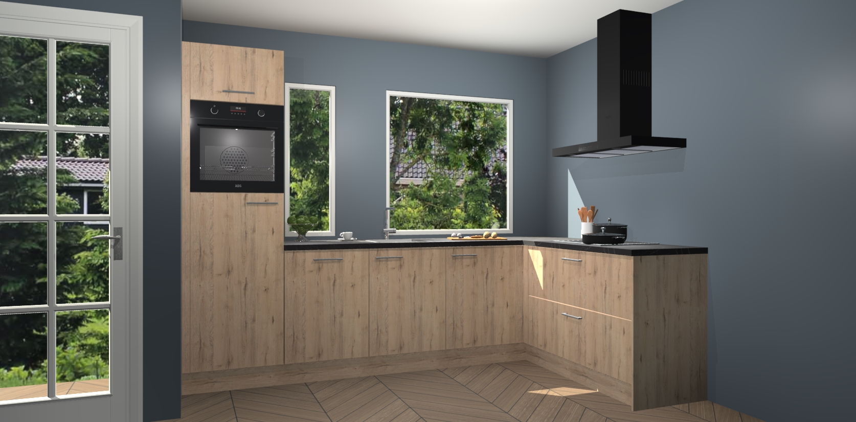 Deze complete keuken wordt geleverd met 5 inbouwapparaten: een oven, inductiekookplaat, afzuigkap, vaatwasser en koelkast. De toestellen kunnen na bestelling ook gemakkelijk worden opgewaardeerd naar AEG. Bovendien is elke deur in deze keuken voorzien van handige softclose technologie voor eenvoudig gebruik! Als een leuke toevoeging zit in deze keuken ook een carrousel, zo hoef je niet meer de hoek in duiken om iets te pakken.