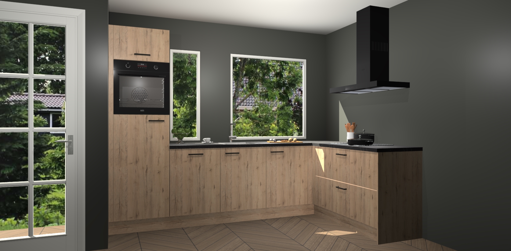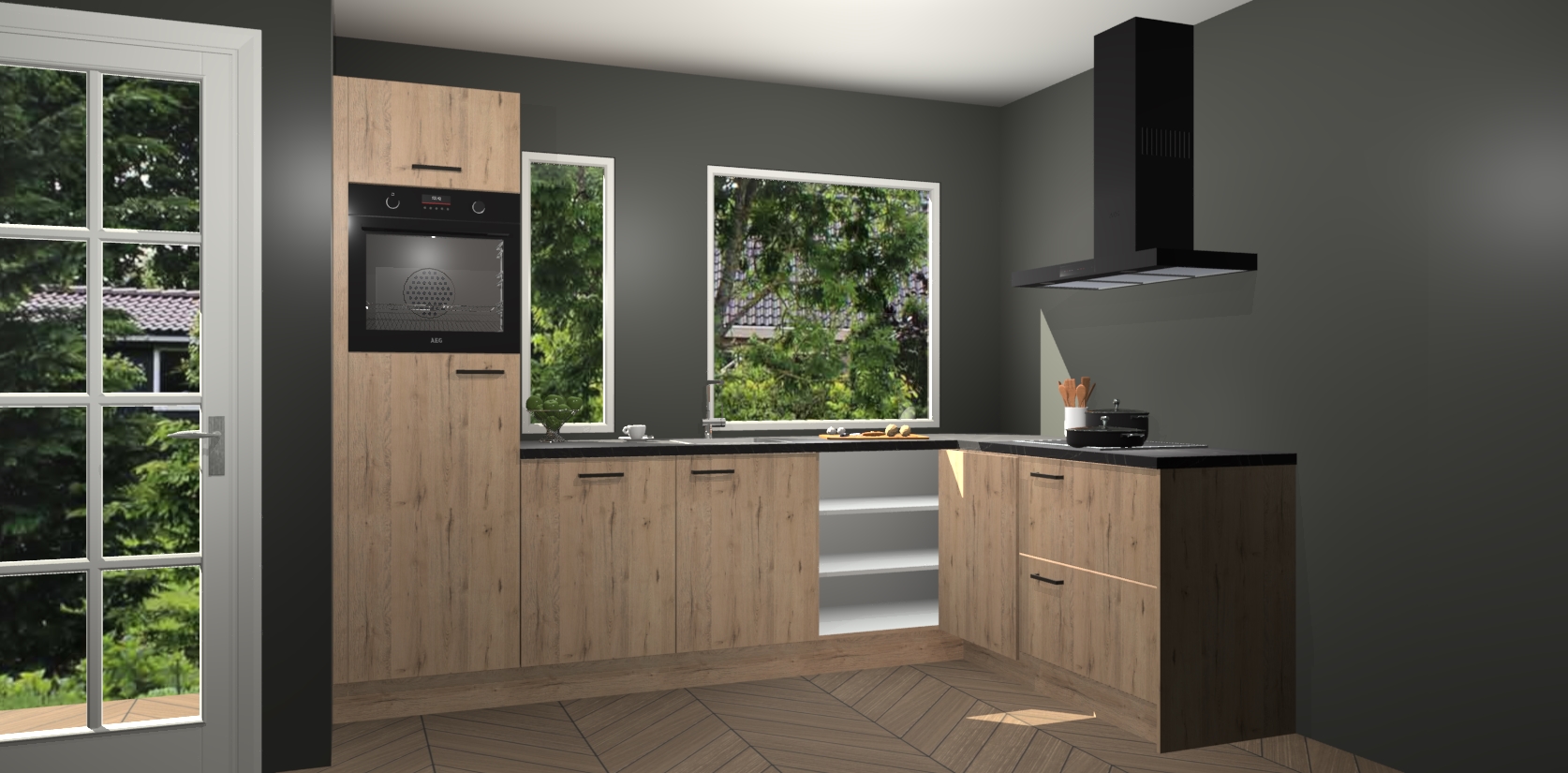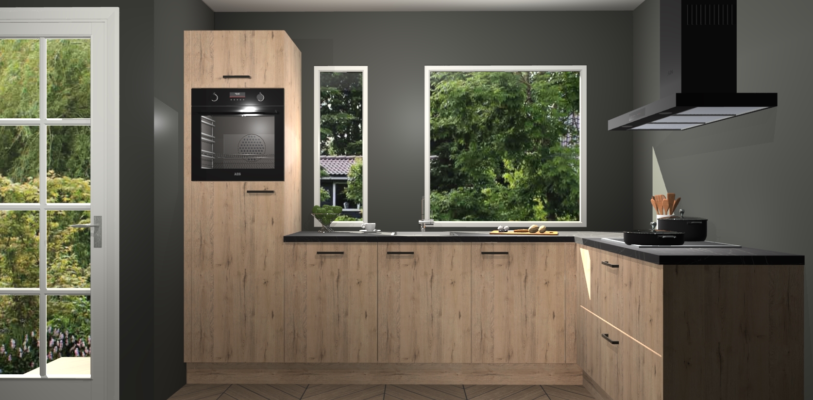 Deze complete keuken wordt geleverd met 5 inbouwapparaten: een oven, inductiekookplaat, afzuigkap, vaatwasser en koelkast. De toestellen kunnen na bestelling ook gemakkelijk worden opgewaardeerd naar AEG. Bovendien is elke deur in deze keuken voorzien van handige softclose technologie voor eenvoudig gebruik! Als een leuke toevoeging zit in deze keuken ook een carrousel, zo hoef je niet meer de hoek in duiken om iets te pakken.