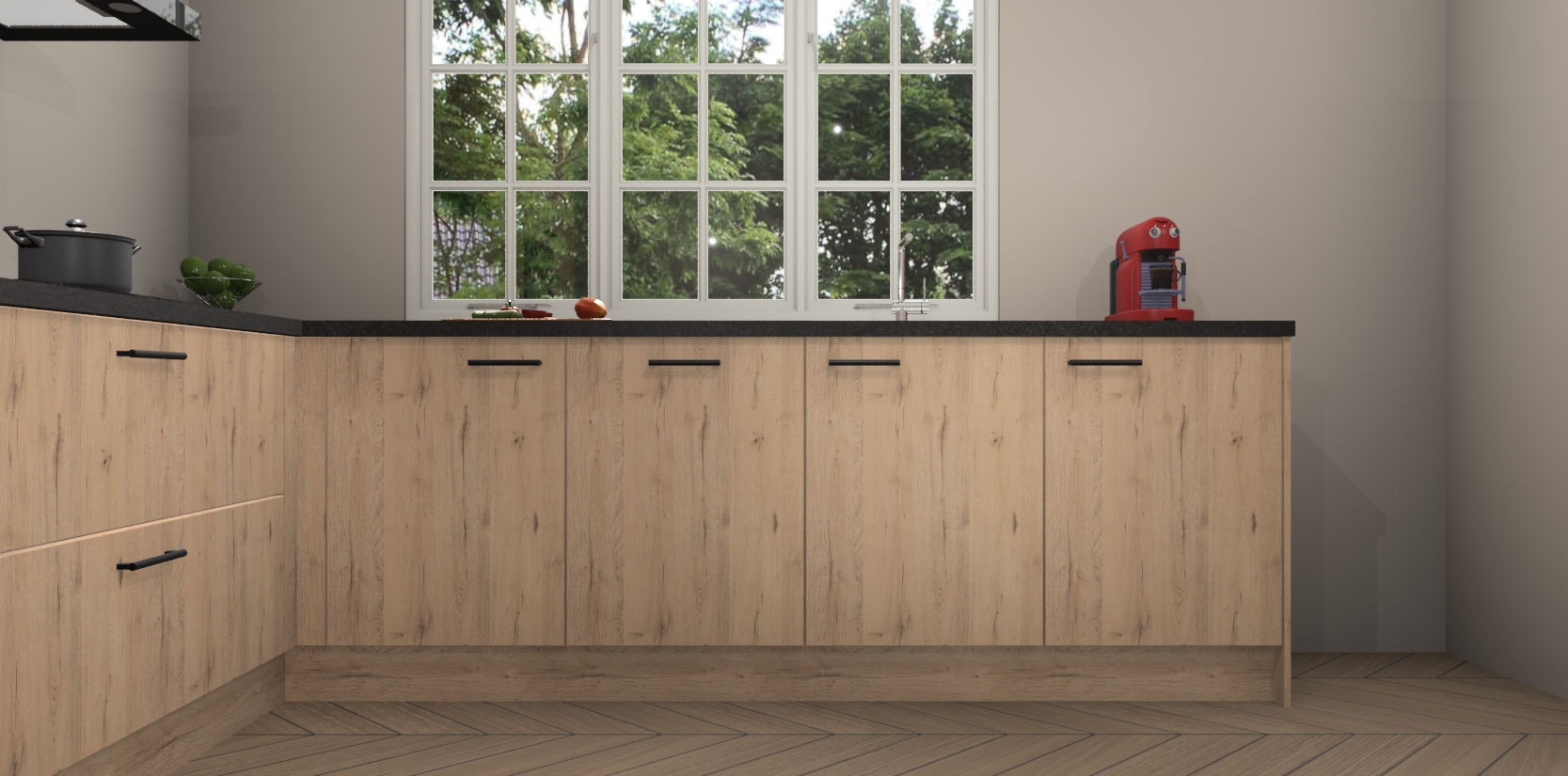 Welkom in de nieuwe wereld van een moderne keuken: de madera natuur keuken Casablanca! Met dit innovatieve keukendesign haalt u de natuur naar binnen. Neem plaats aan uw hout-look keuken en voel u verbonden met de prachtige madera natuur kleur. Zeer gebruiksvriendelijk, ervaring door prettige materialen en kleur die perfect aansluiten bij uw sfeerkeuze in huis.
