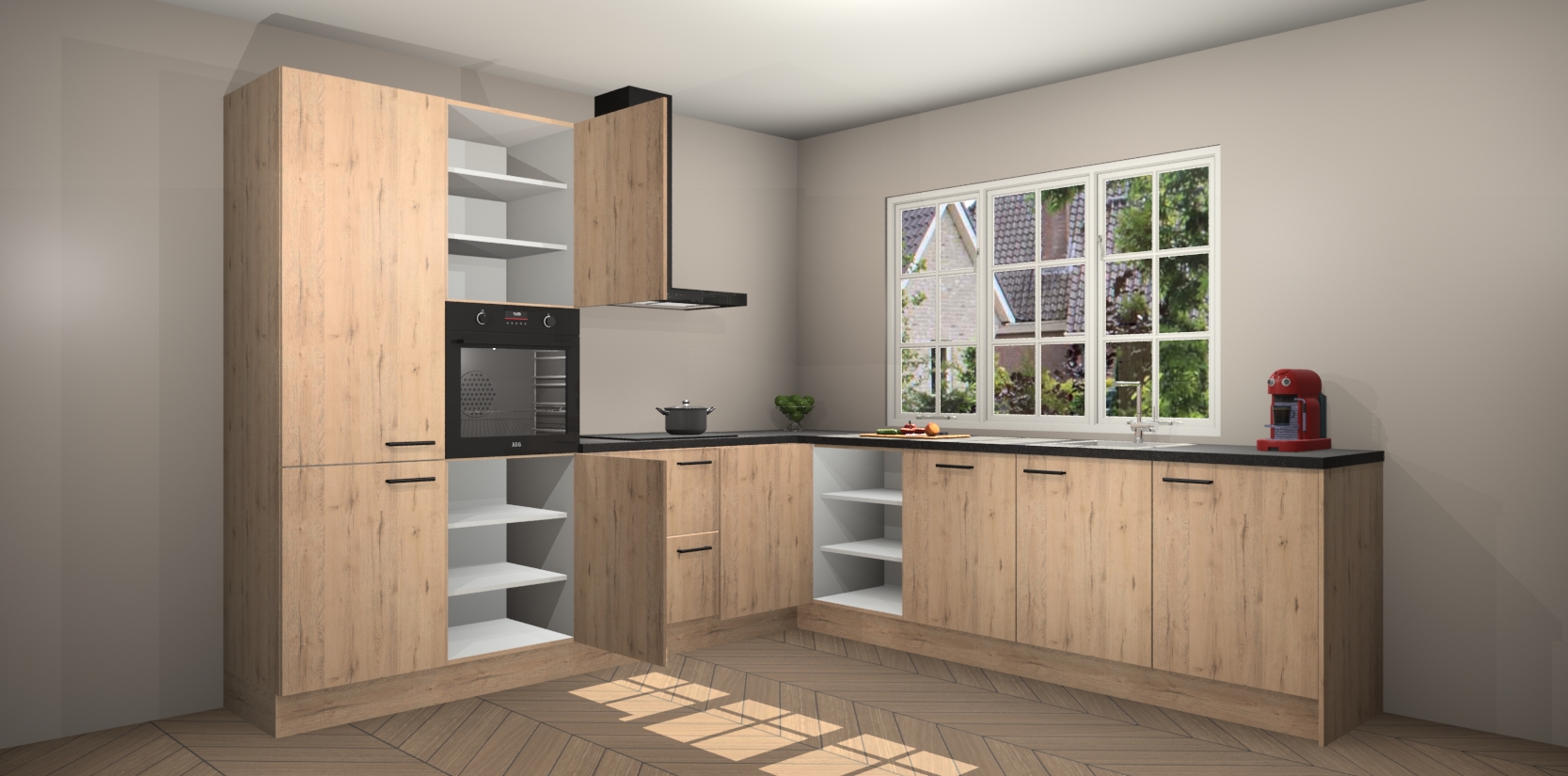 De keuken heeft veel opbergruimte, waardoor u alle ingrediënten gemakkelijk bereikbaar hebt staan. En daarnaast bevat deze volledig uitgeruste keuken ook 5 ingebouwde apparaten: een oven, inductiekookplaat, afzuigkap, vaatwasser en koelkast. Deze zijn heel eenvoudig na bestellen te upgraden naar AEG als u dit wilt. Bovendien zijn de softclose-kastdeuren ideaal; geef ze gewoon even een tikje en ze sluiten automatisch met geruisloze precisie.