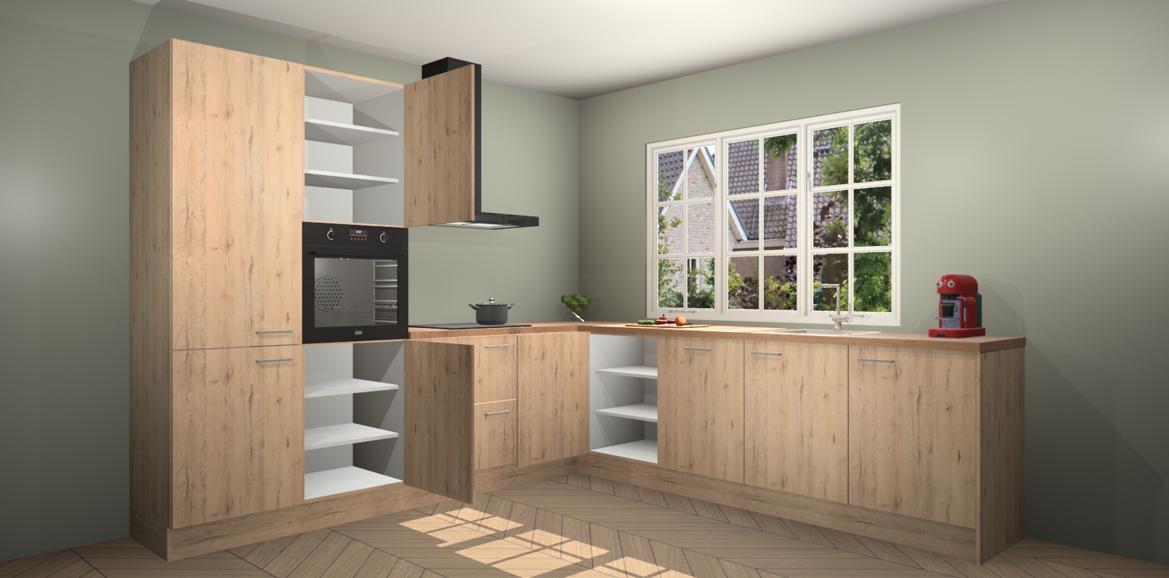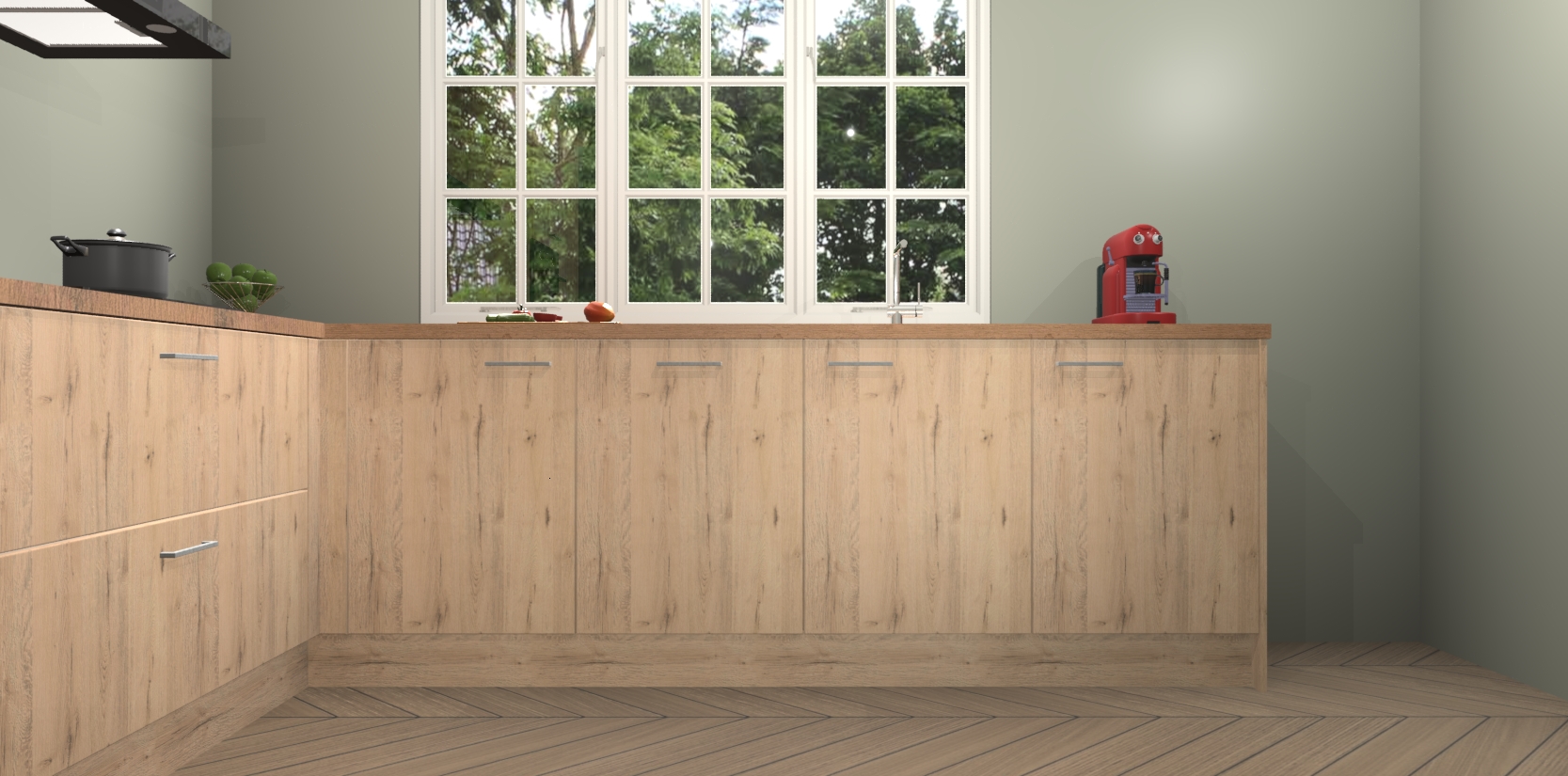 Welkom in de nieuwe wereld van een moderne keuken: de madera natuur keuken Casablanca! Met dit innovatieve keukendesign haalt u de natuur naar binnen. Neem plaats aan uw hout-look keuken en voel u verbonden met de prachtige madera natuur kleur. Zeer gebruiksvriendelijk, ervaring door prettige materialen en kleur die perfect aansluiten bij uw sfeerkeuze in huis.