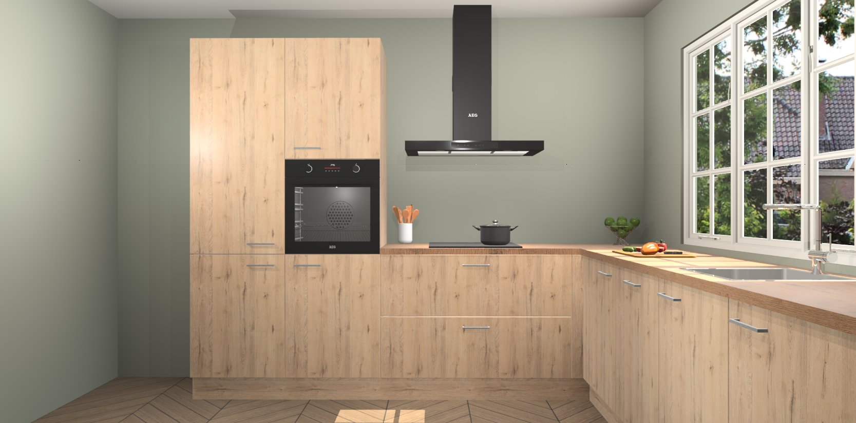 De keuken heeft veel opbergruimte, waardoor u alle ingrediënten gemakkelijk bereikbaar hebt staan. En daarnaast bevat deze volledig uitgeruste keuken ook 5 ingebouwde apparaten: een oven, inductiekookplaat, afzuigkap, vaatwasser en koelkast. Deze zijn heel eenvoudig na bestellen te upgraden naar AEG als u dit wilt. Bovendien zijn de softclose-kastdeuren ideaal; geef ze gewoon even een tikje en ze sluiten automatisch met geruisloze precisie.