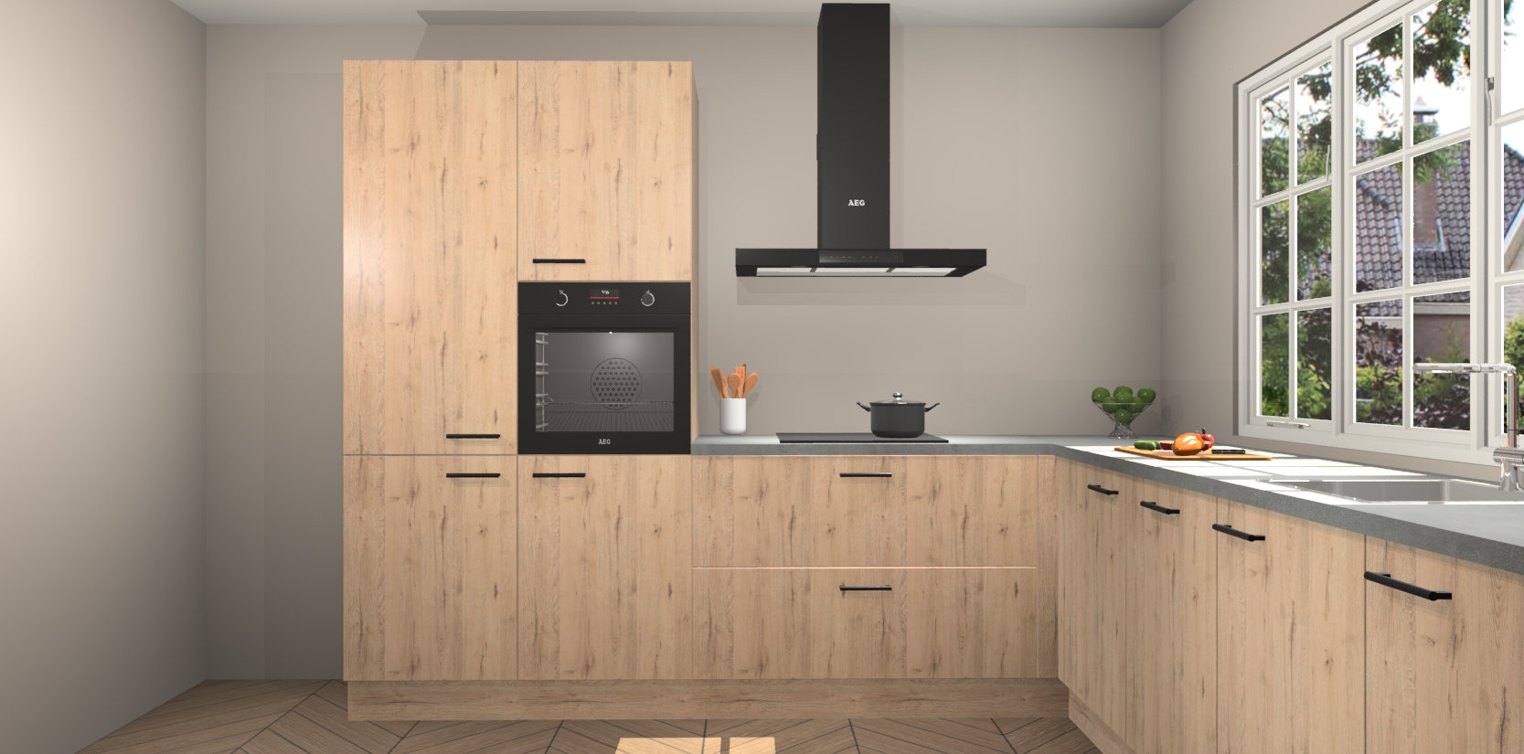 De keuken heeft veel opbergruimte, waardoor u alle ingrediënten gemakkelijk bereikbaar hebt staan. En daarnaast bevat deze volledig uitgeruste keuken ook 5 ingebouwde apparaten: een oven, inductiekookplaat, afzuigkap, vaatwasser en koelkast. Deze zijn heel eenvoudig na bestellen te upgraden naar AEG als u dit wilt. Bovendien zijn de softclose-kastdeuren ideaal; geef ze gewoon even een tikje en ze sluiten automatisch met geruisloze precisie.