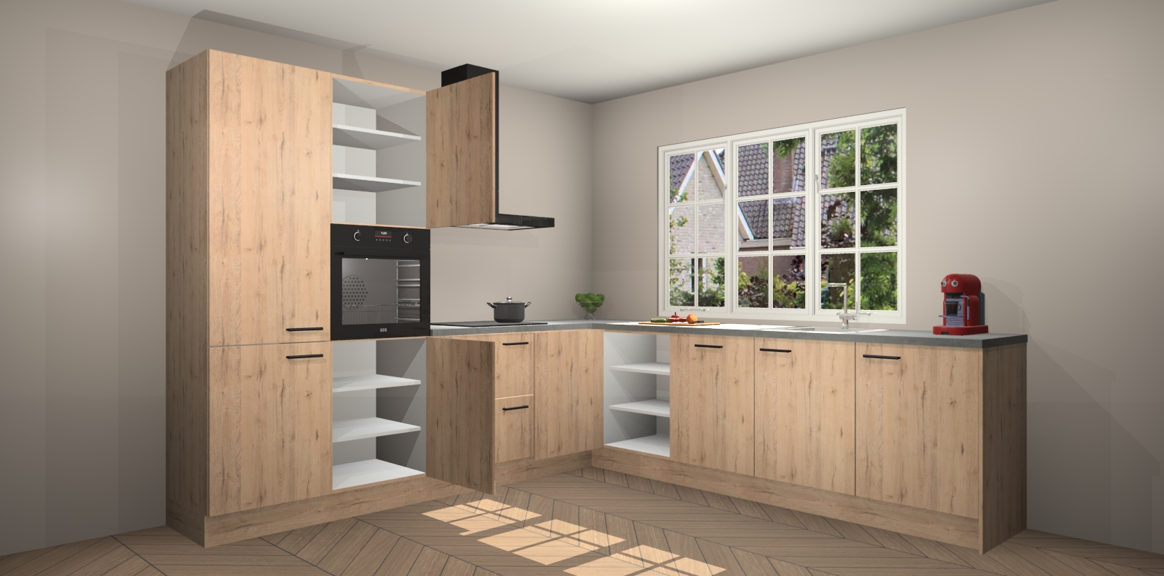 Welkom in de nieuwe wereld van een moderne keuken: de madera natuur keuken Casablanca! Met dit innovatieve keukendesign haalt u de natuur naar binnen. Neem plaats aan uw hout-look keuken en voel u verbonden met de prachtige madera natuur kleur. Zeer gebruiksvriendelijk, ervaring door prettige materialen en kleur die perfect aansluiten bij uw sfeerkeuze in huis.
