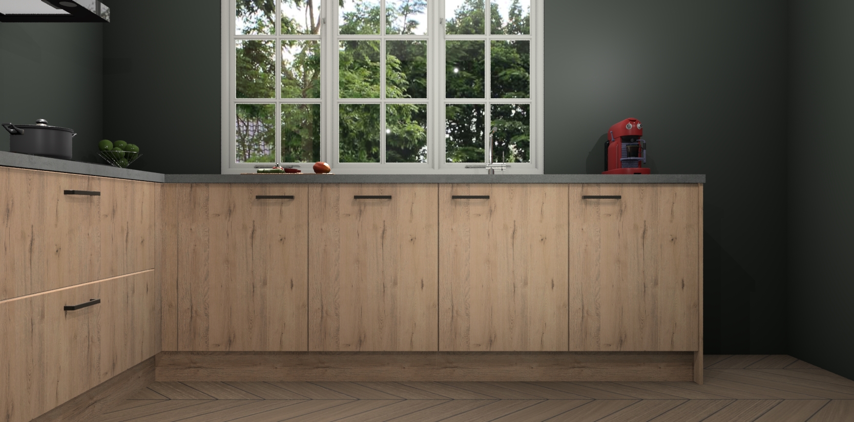 Welkom in de nieuwe wereld van een moderne keuken: de madera natuur keuken Casablanca! Met dit innovatieve keukendesign haalt u de natuur naar binnen. Neem plaats aan uw hout-look keuken en voel u verbonden met de prachtige madera natuur kleur. Zeer gebruiksvriendelijk, ervaring door prettige materialen en kleur die perfect aansluiten bij uw sfeerkeuze in huis.