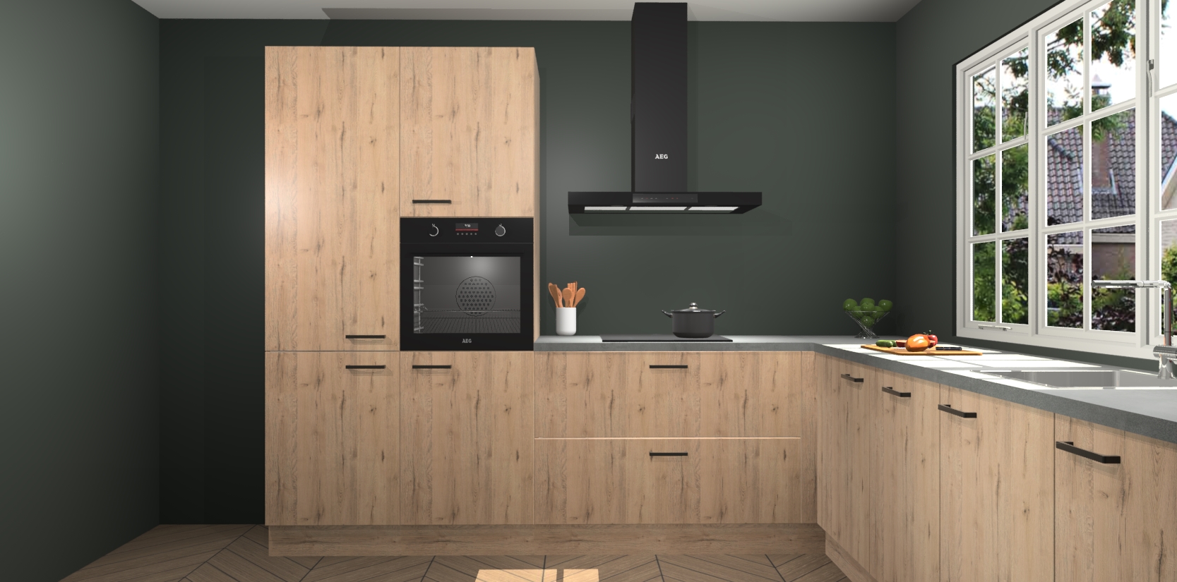 De keuken heeft veel opbergruimte, waardoor u alle ingrediënten gemakkelijk bereikbaar hebt staan. En daarnaast bevat deze volledig uitgeruste keuken ook 5 ingebouwde apparaten: een oven, inductiekookplaat, afzuigkap, vaatwasser en koelkast. Deze zijn heel eenvoudig na bestellen te upgraden naar AEG als u dit wilt. Bovendien zijn de softclose-kastdeuren ideaal; geef ze gewoon even een tikje en ze sluiten automatisch met geruisloze precisie.
