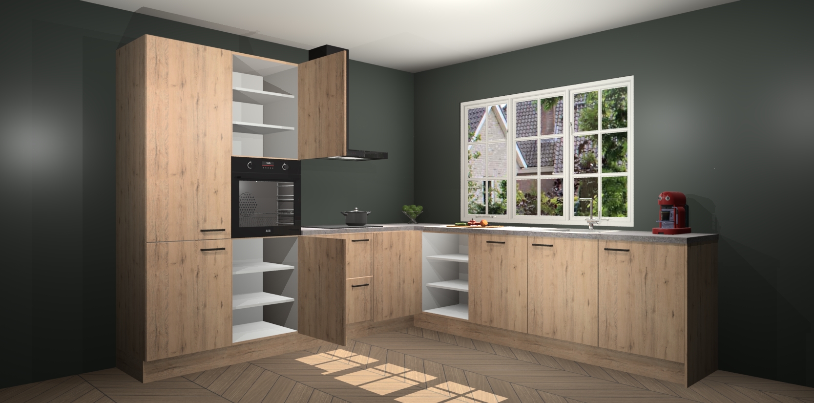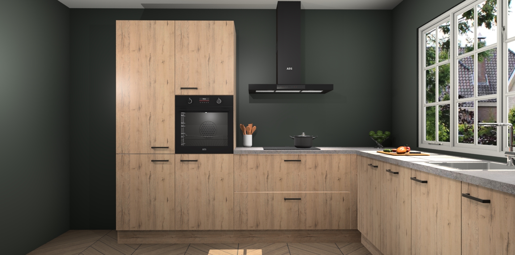 De keuken heeft veel opbergruimte, waardoor u alle ingrediënten gemakkelijk bereikbaar hebt staan. En daarnaast bevat deze volledig uitgeruste keuken ook 5 ingebouwde apparaten: een oven, inductiekookplaat, afzuigkap, vaatwasser en koelkast. Deze zijn heel eenvoudig na bestellen te upgraden naar AEG als u dit wilt. Bovendien zijn de softclose-kastdeuren ideaal; geef ze gewoon even een tikje en ze sluiten automatisch met geruisloze precisie.