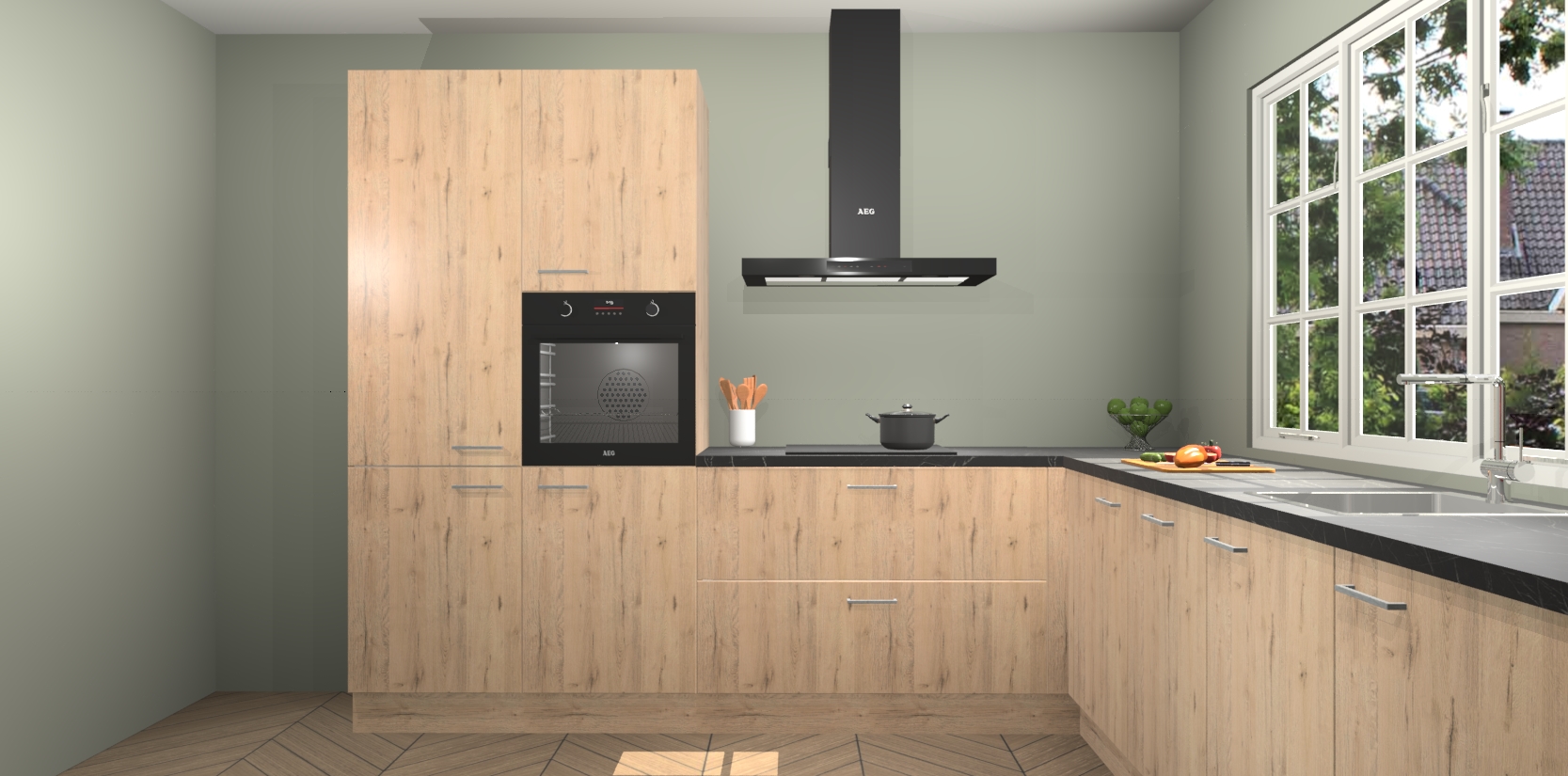 De keuken heeft veel opbergruimte, waardoor u alle ingrediënten gemakkelijk bereikbaar hebt staan. En daarnaast bevat deze volledig uitgeruste keuken ook 5 ingebouwde apparaten: een oven, inductiekookplaat, afzuigkap, vaatwasser en koelkast. Deze zijn heel eenvoudig na bestellen te upgraden naar AEG als u dit wilt. Bovendien zijn de softclose-kastdeuren ideaal; geef ze gewoon even een tikje en ze sluiten automatisch met geruisloze precisie.