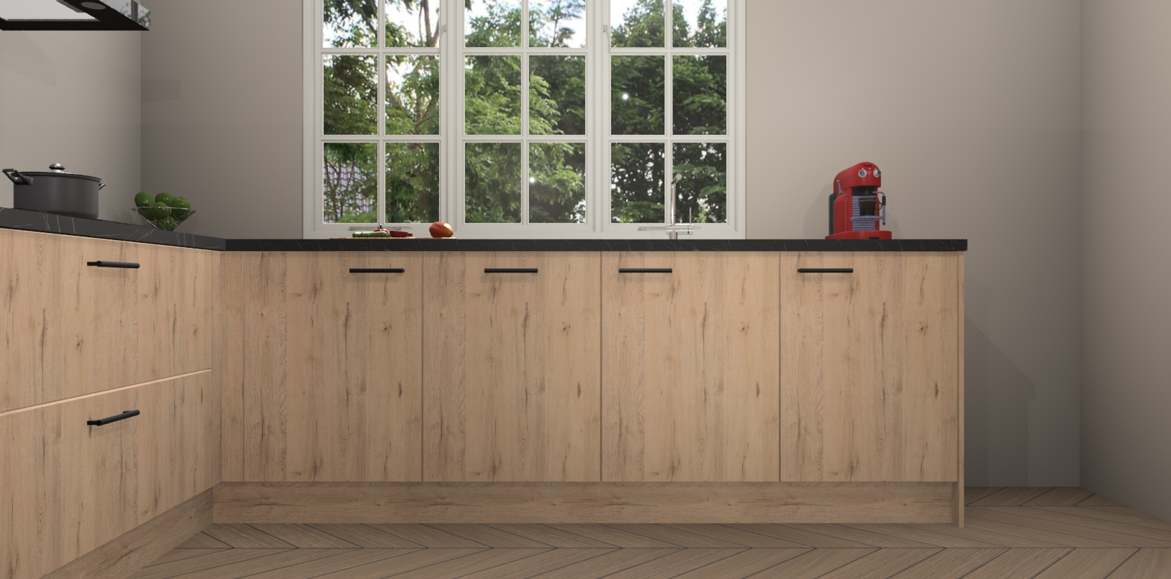 Welkom in de nieuwe wereld van een moderne keuken: de madera natuur keuken Casablanca! Met dit innovatieve keukendesign haalt u de natuur naar binnen. Neem plaats aan uw hout-look keuken en voel u verbonden met de prachtige madera natuur kleur. Zeer gebruiksvriendelijk, ervaring door prettige materialen en kleur die perfect aansluiten bij uw sfeerkeuze in huis.