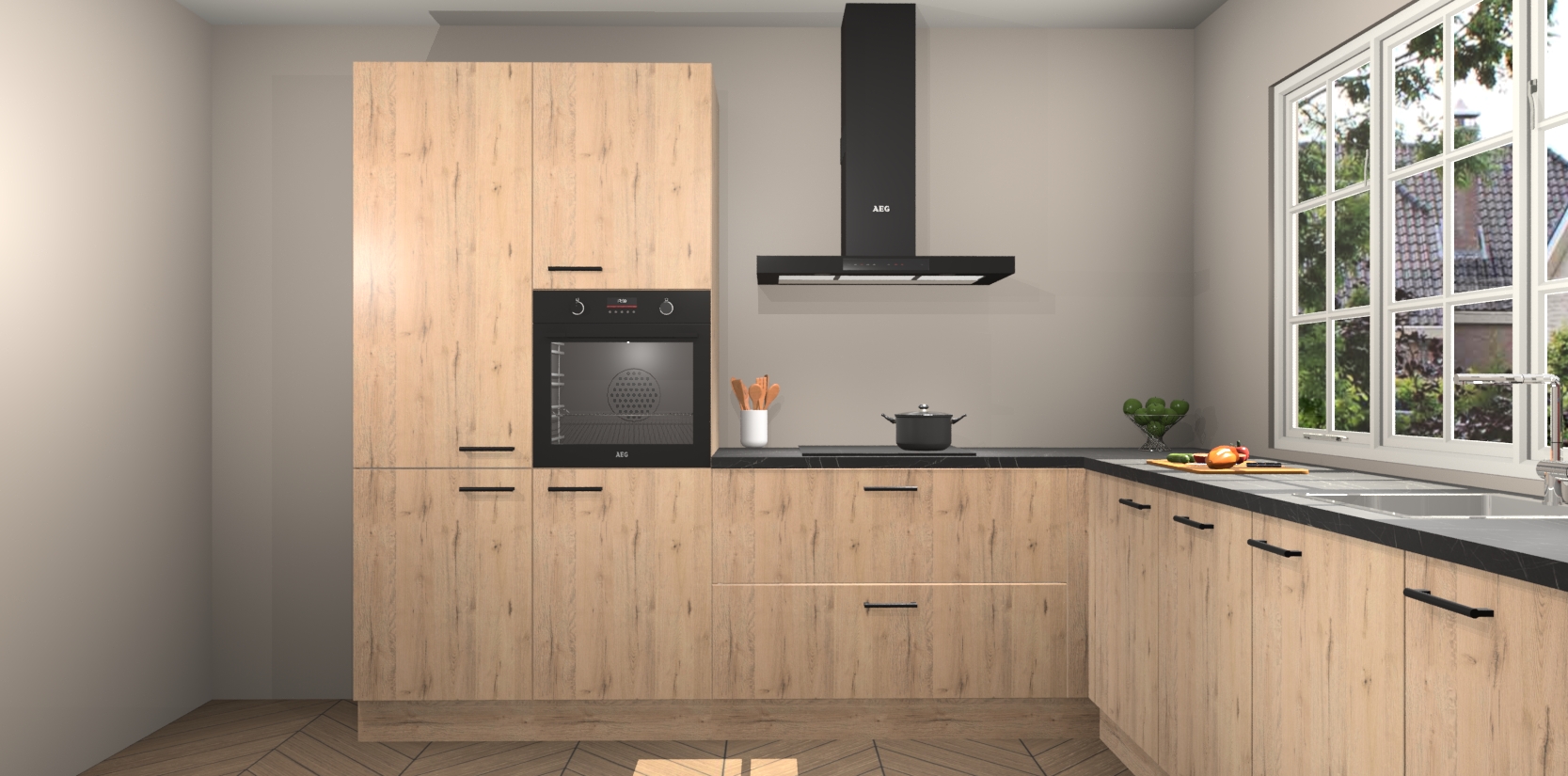 De keuken heeft veel opbergruimte, waardoor u alle ingrediënten gemakkelijk bereikbaar hebt staan. En daarnaast bevat deze volledig uitgeruste keuken ook 5 ingebouwde apparaten: een oven, inductiekookplaat, afzuigkap, vaatwasser en koelkast. Deze zijn heel eenvoudig na bestellen te upgraden naar AEG als u dit wilt. Bovendien zijn de softclose-kastdeuren ideaal; geef ze gewoon even een tikje en ze sluiten automatisch met geruisloze precisie.
