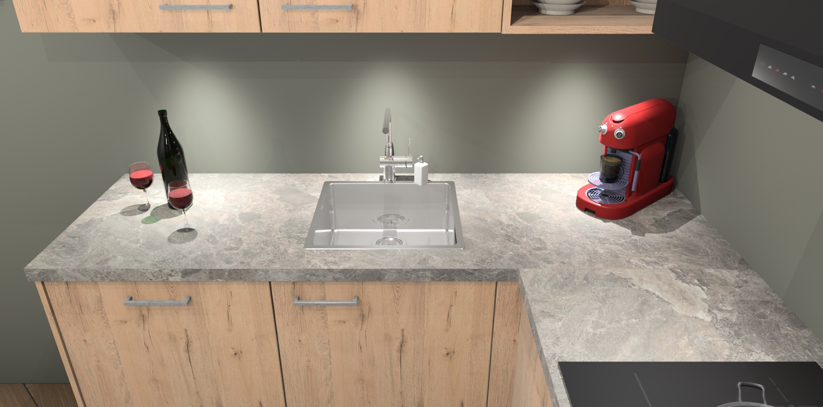 - Bij een hoekwerkblad zijn de hoeken in gevreesd en op maat gemaakt
