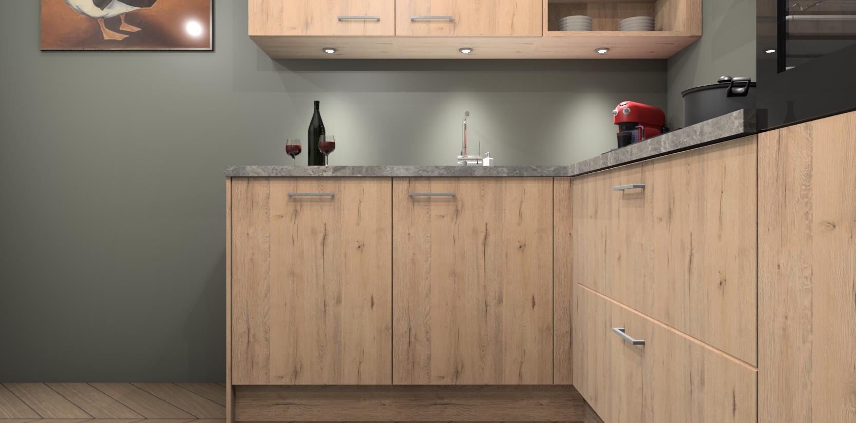 In deze box zijn alle kleuren verzameld van de deuren en werkbladen. Vraag de gratis kleurenbox aan en kijk thuis rustig verder!