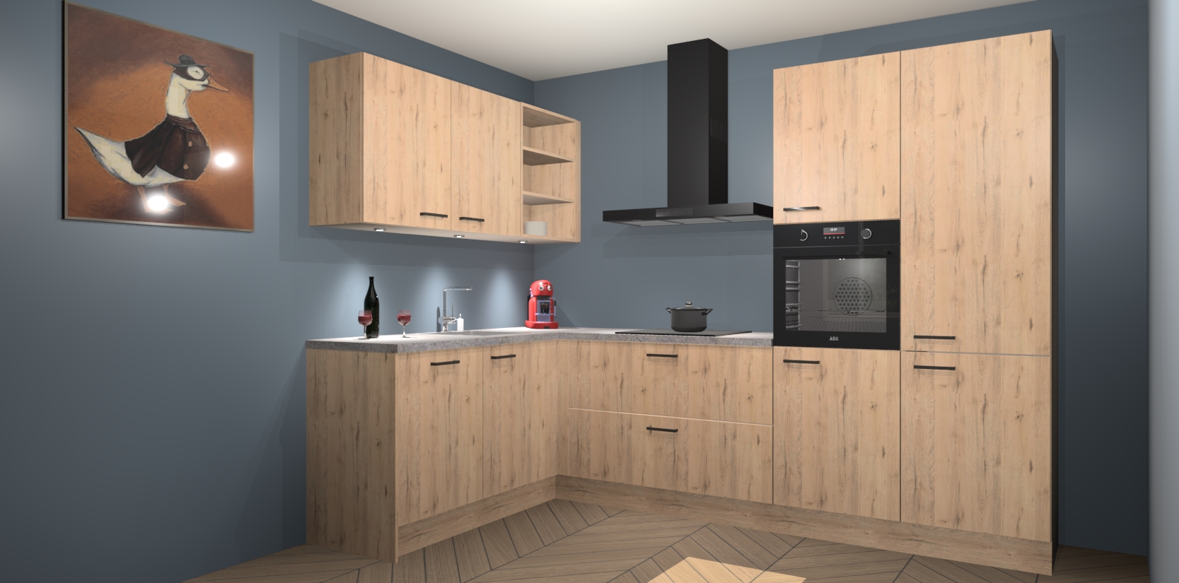 De Madera Natuur keuken Cognac is een adembenemend ontwerp met een modern en tijdloos uiterlijk. Deze luxe keuken straalt echt aristocratisch uit, waardoor uw koken plezieriger zal worden! Het prachtige design begint bij de hoekkeuken, wat perfect past bij elk type interieur. Bovendien bevat deze hoogwaardige set vijf inbouwapparaten - van oven tot koelkast - die via bestelling naar AEG geüpgraded kunnen worden!