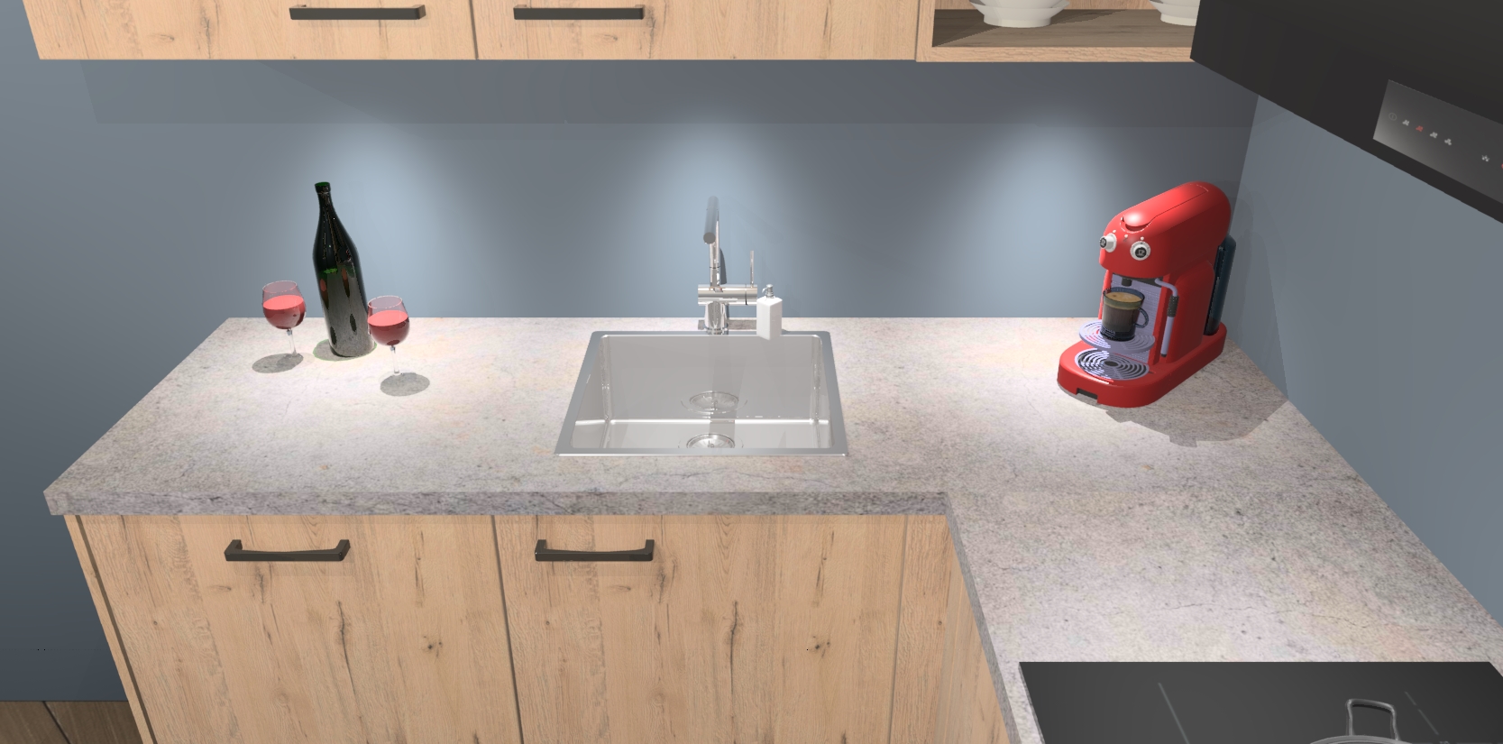 - Bij een hoekwerkblad zijn de hoeken in gevreesd en op maat gemaakt
