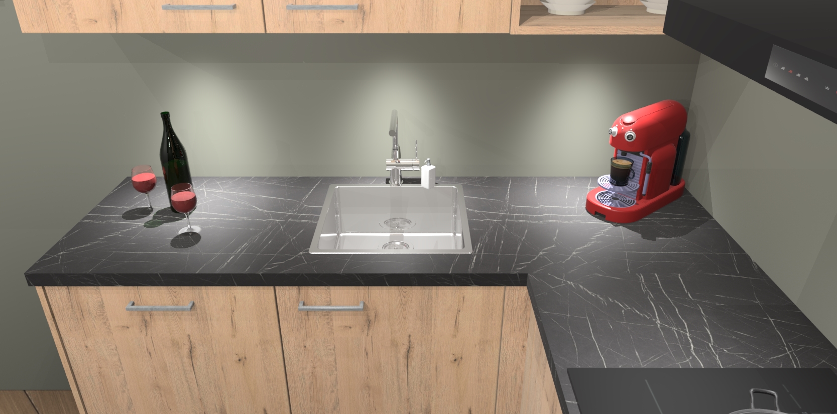 - Bij een hoekwerkblad zijn de hoeken in gevreesd en op maat gemaakt