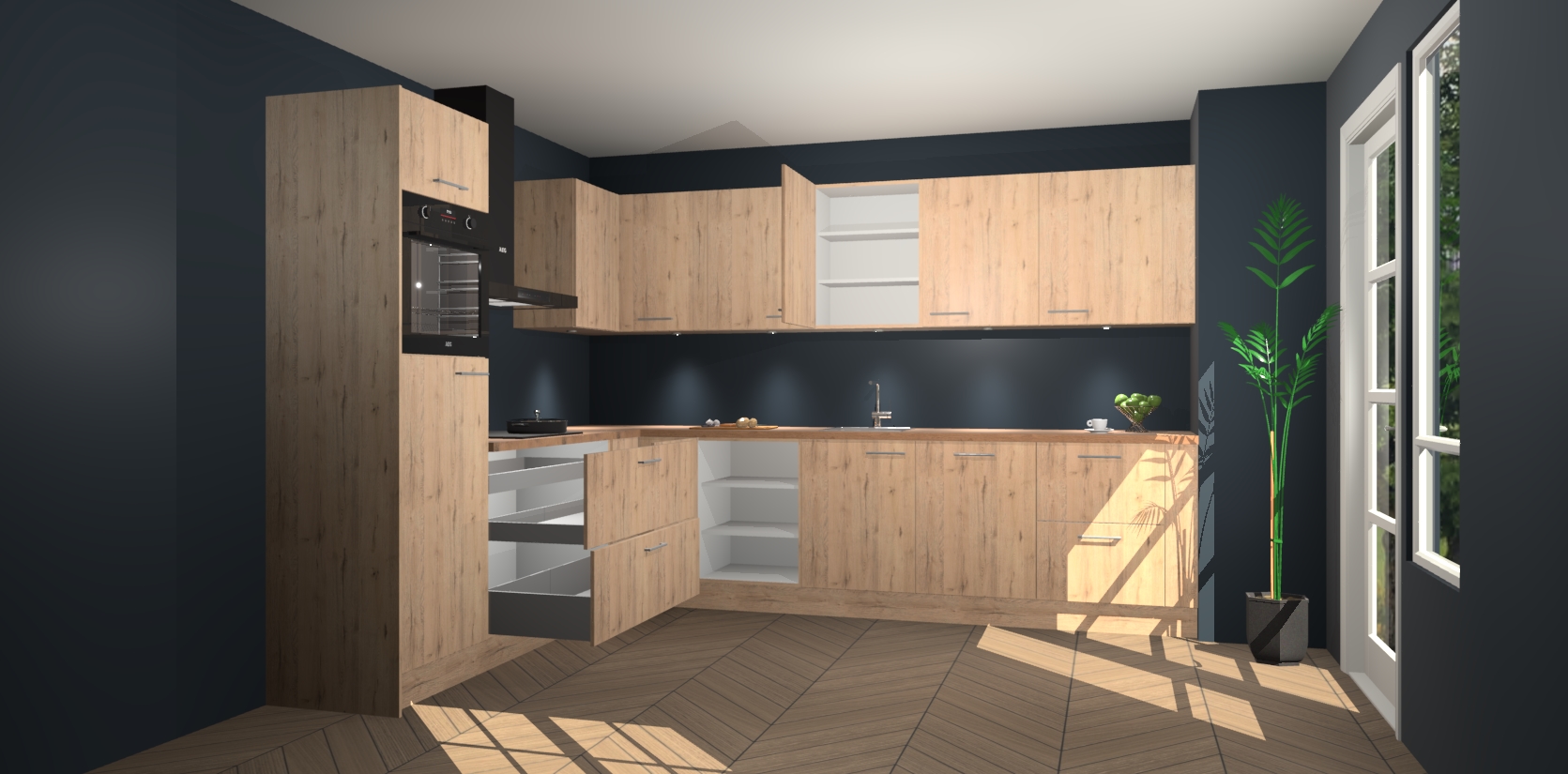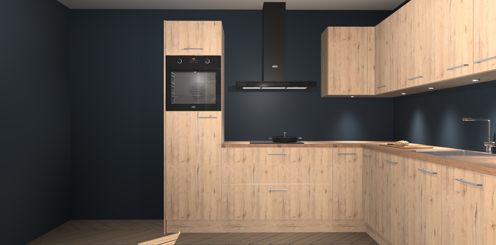 De Madera Natuur keuken Debar is uitgerust met vijf inbouwapparaten die elke kooktaak handig en efficiënt maken. Een oven, inductiekookplaat, afzuigkap, vaatwasser en koelkast zijn standaard, maar kunnen na bestelling eenvoudig worden geupgrade naar AEG. Profiteer vervolgens van de softclose deuren voor snelle toegang en geruisloze toegang.