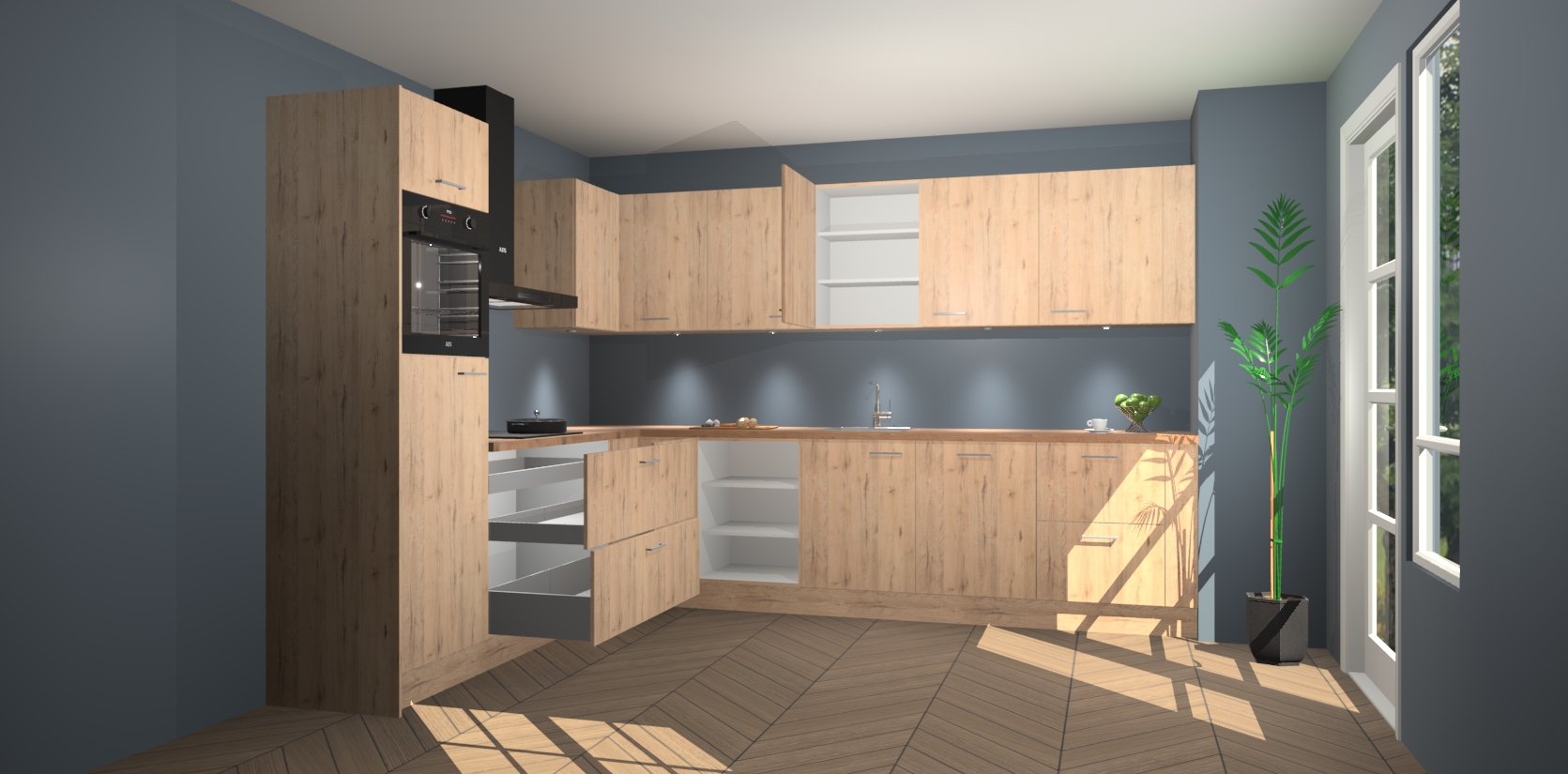 De Madera Natuur keuken Debar is uitgerust met vijf inbouwapparaten die elke kooktaak handig en efficiënt maken. Een oven, inductiekookplaat, afzuigkap, vaatwasser en koelkast zijn standaard, maar kunnen na bestelling eenvoudig worden geupgrade naar AEG. Profiteer vervolgens van de softclose deuren voor snelle toegang en geruisloze toegang.