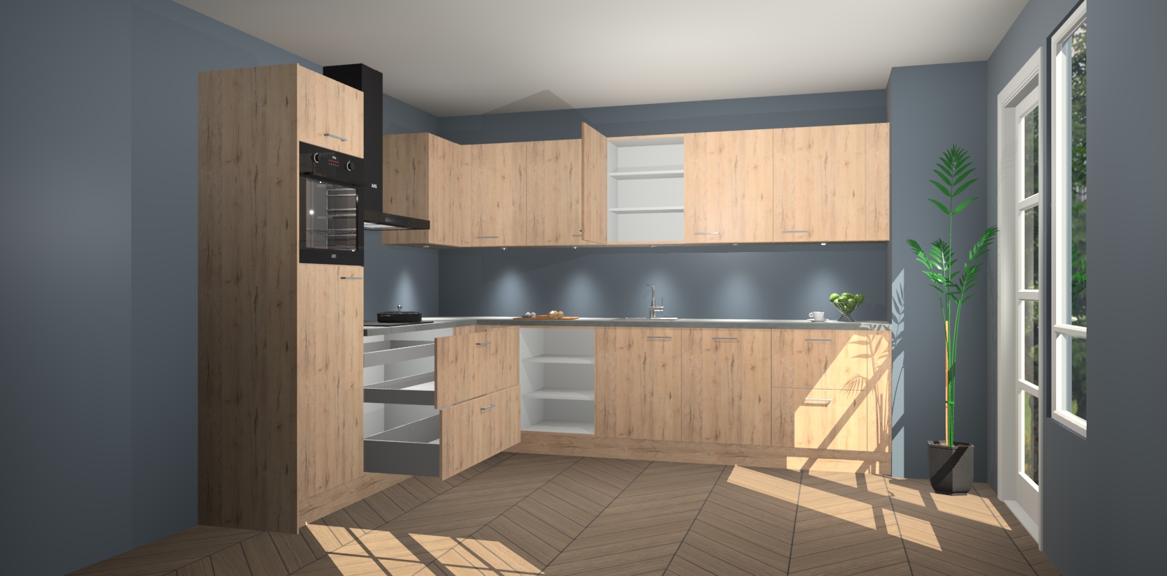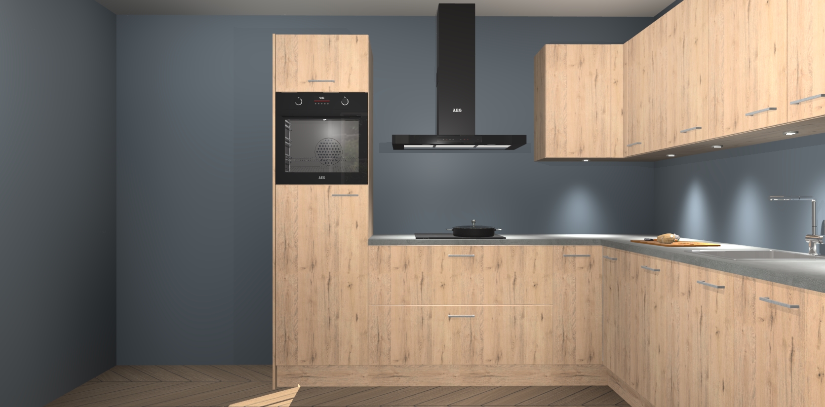 De Madera Natuur keuken Debar is uitgerust met vijf inbouwapparaten die elke kooktaak handig en efficiënt maken. Een oven, inductiekookplaat, afzuigkap, vaatwasser en koelkast zijn standaard, maar kunnen na bestelling eenvoudig worden geupgrade naar AEG. Profiteer vervolgens van de softclose deuren voor snelle toegang en geruisloze toegang.