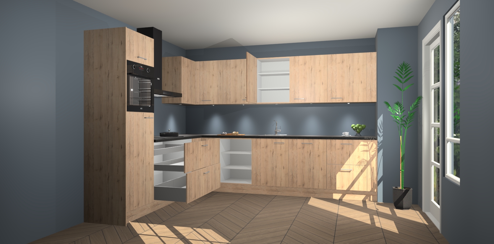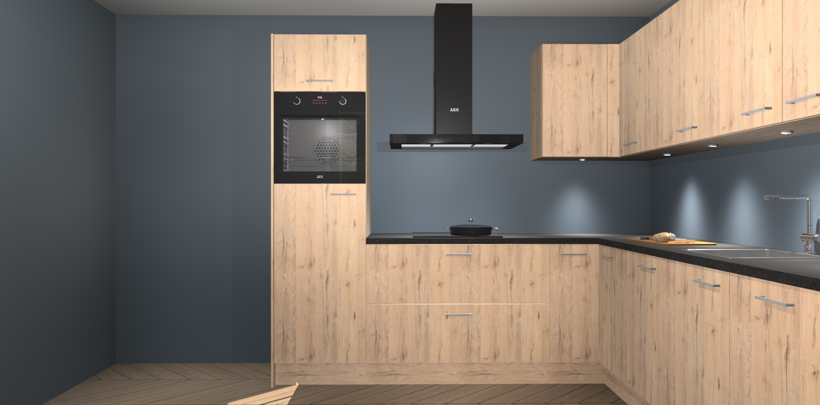 De Madera Natuur keuken Debar is uitgerust met vijf inbouwapparaten die elke kooktaak handig en efficiënt maken. Een oven, inductiekookplaat, afzuigkap, vaatwasser en koelkast zijn standaard, maar kunnen na bestelling eenvoudig worden geupgrade naar AEG. Profiteer vervolgens van de softclose deuren voor snelle toegang en geruisloze toegang.