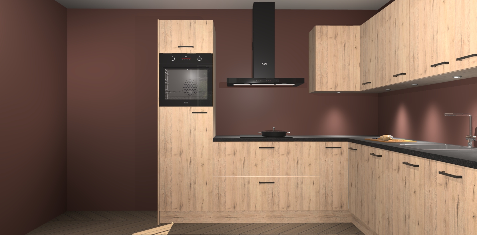 De Madera Natuur keuken Debar is uitgerust met vijf inbouwapparaten die elke kooktaak handig en efficiënt maken. Een oven, inductiekookplaat, afzuigkap, vaatwasser en koelkast zijn standaard, maar kunnen na bestelling eenvoudig worden geupgrade naar AEG. Profiteer vervolgens van de softclose deuren voor snelle toegang en geruisloze toegang.