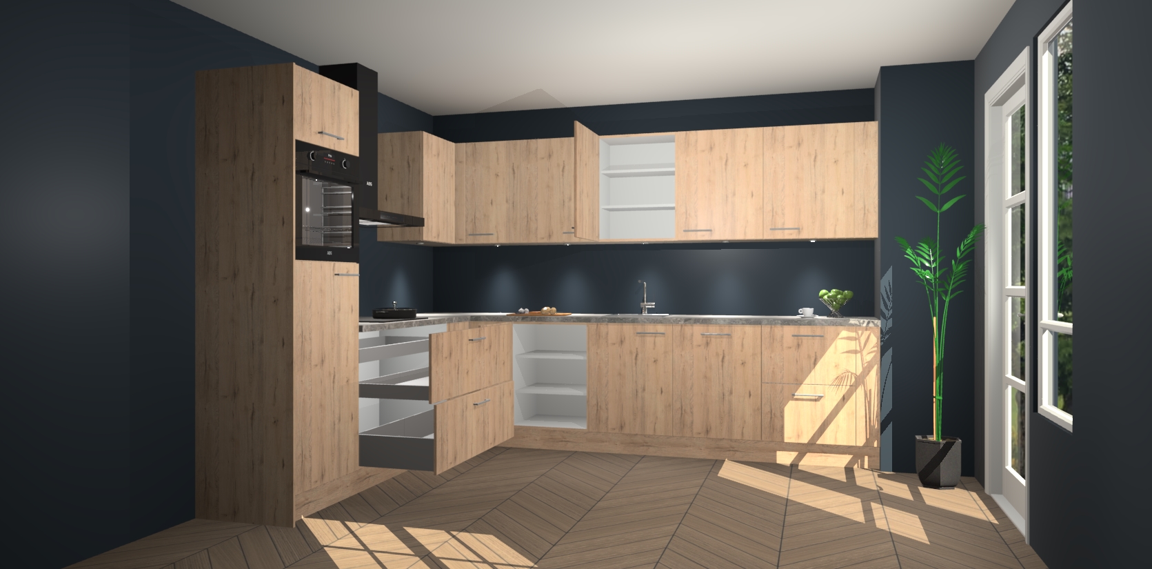 De Madera Natuur keuken Debar is uitgerust met vijf inbouwapparaten die elke kooktaak handig en efficiënt maken. Een oven, inductiekookplaat, afzuigkap, vaatwasser en koelkast zijn standaard, maar kunnen na bestelling eenvoudig worden geupgrade naar AEG. Profiteer vervolgens van de softclose deuren voor snelle toegang en geruisloze toegang.