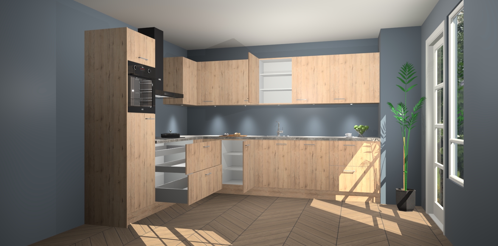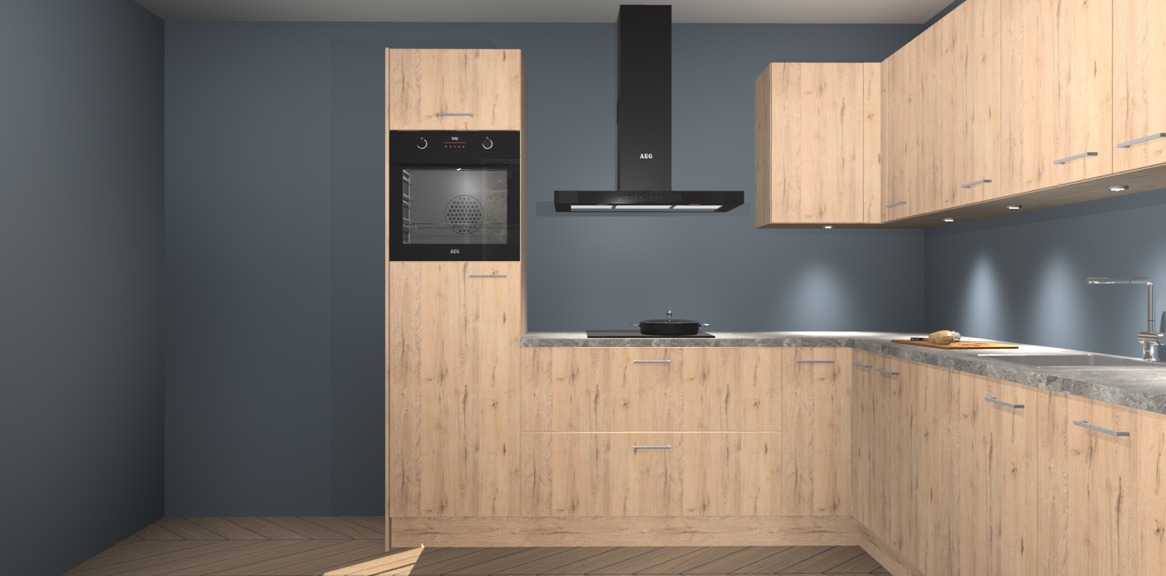 De Madera Natuur keuken Debar is uitgerust met vijf inbouwapparaten die elke kooktaak handig en efficiënt maken. Een oven, inductiekookplaat, afzuigkap, vaatwasser en koelkast zijn standaard, maar kunnen na bestelling eenvoudig worden geupgrade naar AEG. Profiteer vervolgens van de softclose deuren voor snelle toegang en geruisloze toegang.