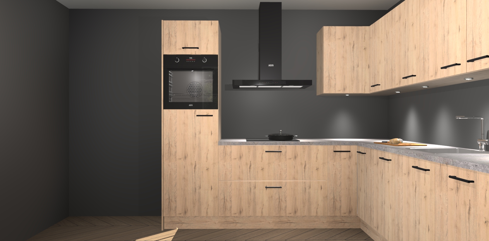 De Madera Natuur keuken Debar is uitgerust met vijf inbouwapparaten die elke kooktaak handig en efficiënt maken. Een oven, inductiekookplaat, afzuigkap, vaatwasser en koelkast zijn standaard, maar kunnen na bestelling eenvoudig worden geupgrade naar AEG. Profiteer vervolgens van de softclose deuren voor snelle toegang en geruisloze toegang.