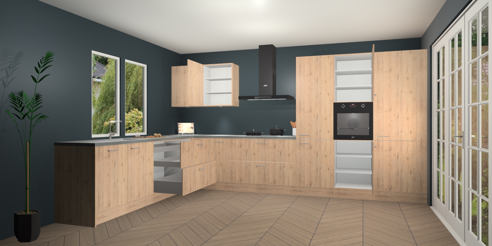 Kom dichtbij de perfecte keuken van uw dromen met de Madera Natuur keuken Debrecen. Met een prachtige houtlook en eigentijds ontwerp, straalt deze keuken warmte en sfeer uit. Of u nu liefhebber bent van traditionele of moderne stijlen, er is genoeg ruimte om aan al uw behoeften te voldoen.
