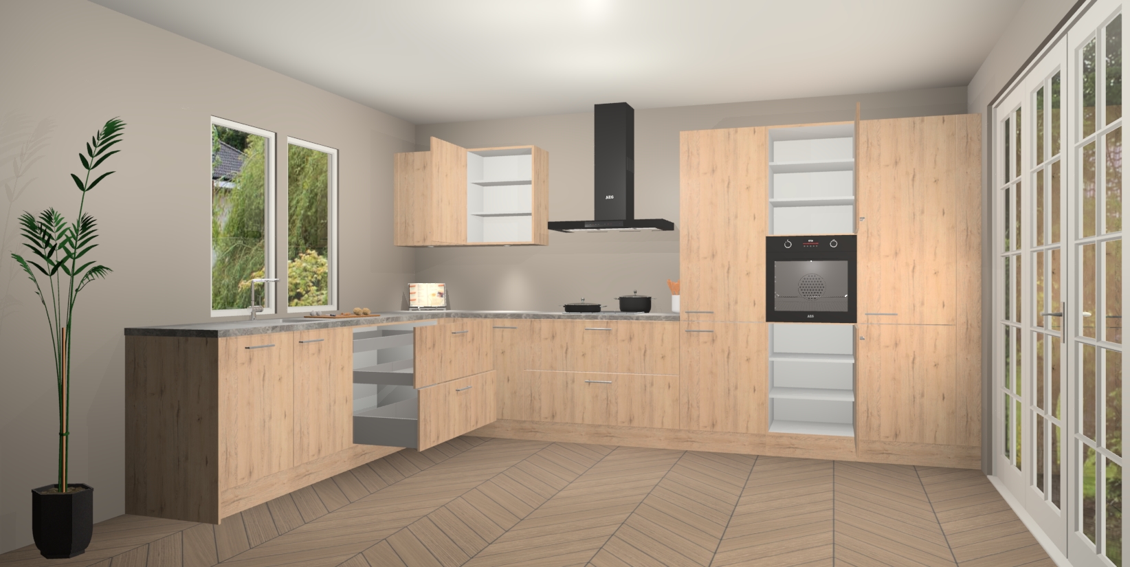 Heeft u nog apparatuur nodig? Geen probleem: de Madera Natuur keuken Debrecen bevat vijf ingebouwde apparaten - een oven, inductiekookplaat, afzuigkap, vaatwasser en koelkast - die gemakkelijk kunnen worden bijgewerkt naar AEG na bestelling. En als dat nog niet genoeg is; onze kasten worden pre-geassembleerd geleverd en zijn verkrijgbaar tegen een vastgeroeste lage prijs! U hoeft nooit meer te zoeken naar goede kwaliteit en service want onze producten hebben echt Duitse kwaliteit.