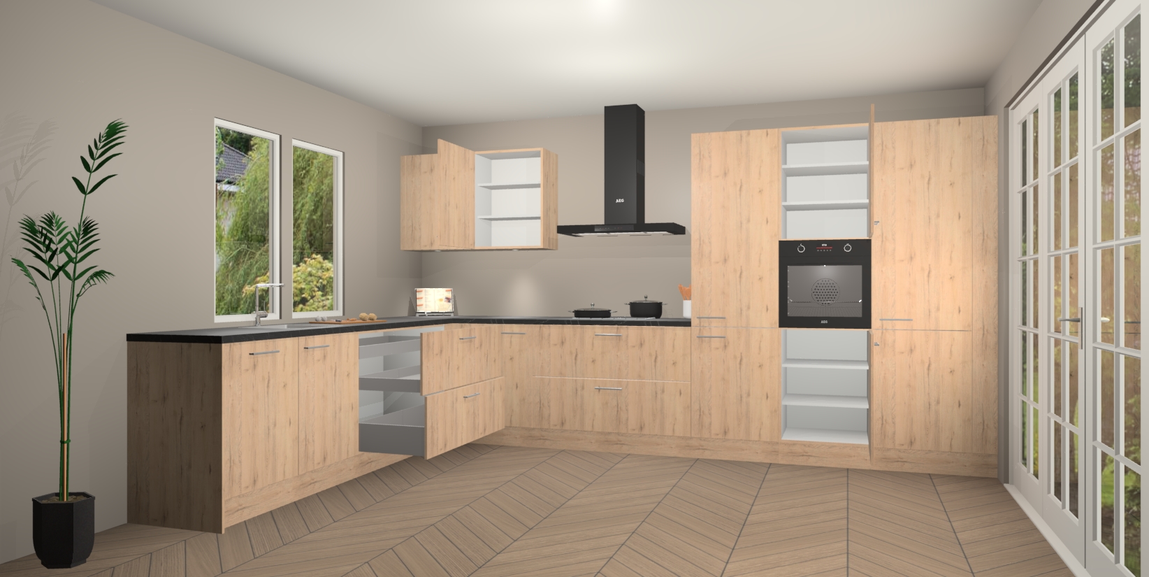 Heeft u nog apparatuur nodig? Geen probleem: de Madera Natuur keuken Debrecen bevat vijf ingebouwde apparaten - een oven, inductiekookplaat, afzuigkap, vaatwasser en koelkast - die gemakkelijk kunnen worden bijgewerkt naar AEG na bestelling. En als dat nog niet genoeg is; onze kasten worden pre-geassembleerd geleverd en zijn verkrijgbaar tegen een vastgeroeste lage prijs! U hoeft nooit meer te zoeken naar goede kwaliteit en service want onze producten hebben echt Duitse kwaliteit.