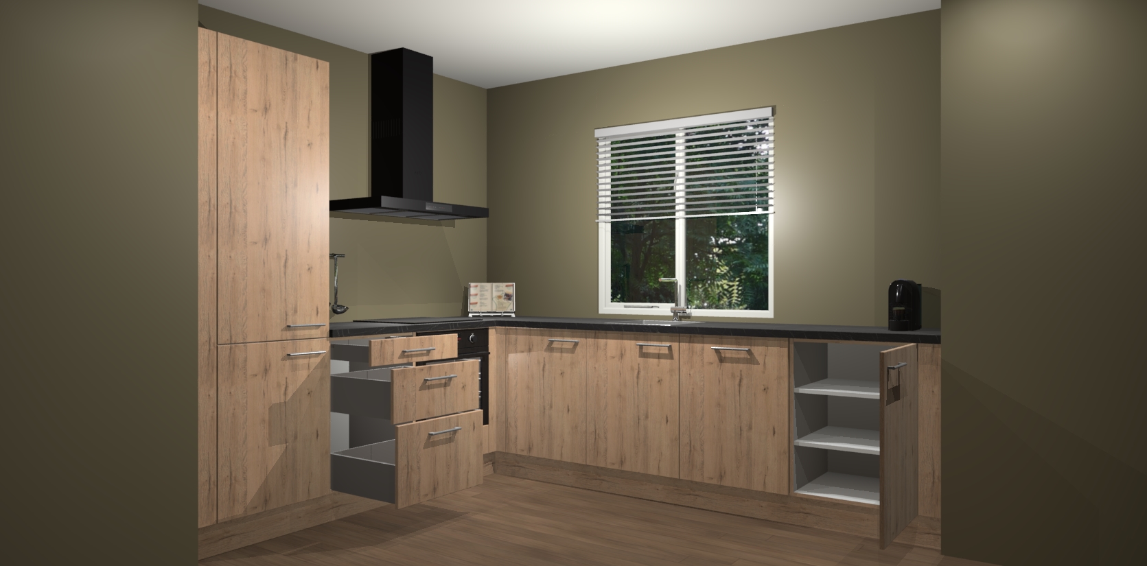 Maak kennis met de Madera Natuur keuken Doha - de perfecte aanvulling voor uw moderne keuken! Ervaar tijdloos design, elegantie en een chique uitstraling met onze zwarte handgrepen, soft-close deuren en veel opbergruimte. Dit alles wordt aangeboden tegen een vaste lage prijs voor ongeëvenaarde Duitse keukenkwaliteit!