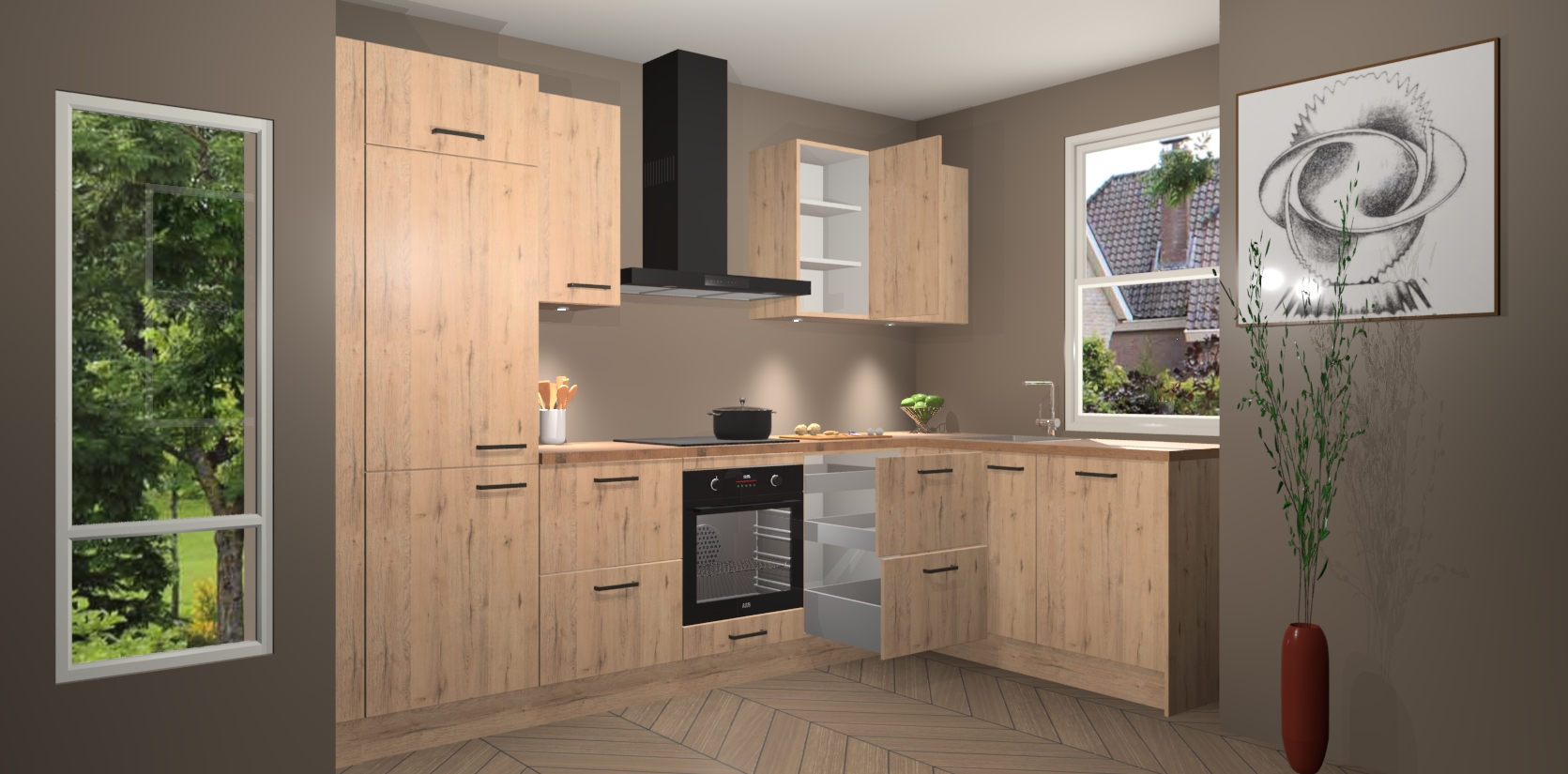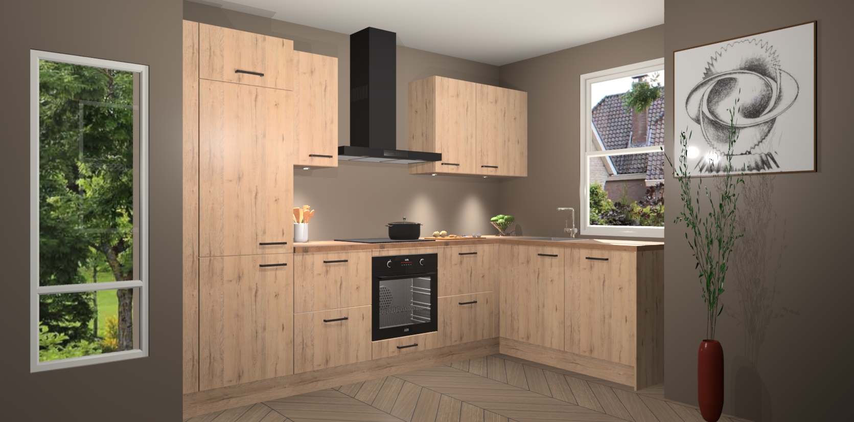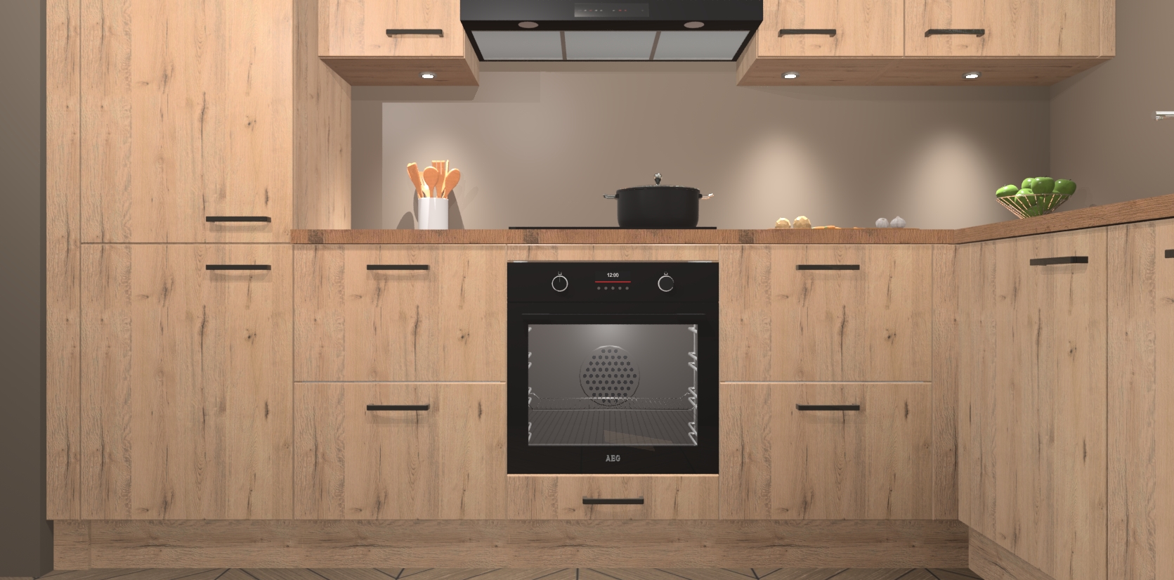 De Madera Natuur keuken Geneve is uitgerust met 5 inbouwapparaten - een oven, inductiekookplaat, afzuigkap, vaatwasser en koelkast - voor al uw kook- en bewaarbehoeftes. U kunt deze apparaten desgewenst eenvoudig upgraden naar AEG of de oven omruilen voor een combimagnetron na het plaatsen van uw bestelling. En met de soft close deuren, voldoende opbergruimte en kasten die voorgemonteerd worden geleverd, bent u in een mum van tijd klaar om heerlijke maaltijden te bereiden!