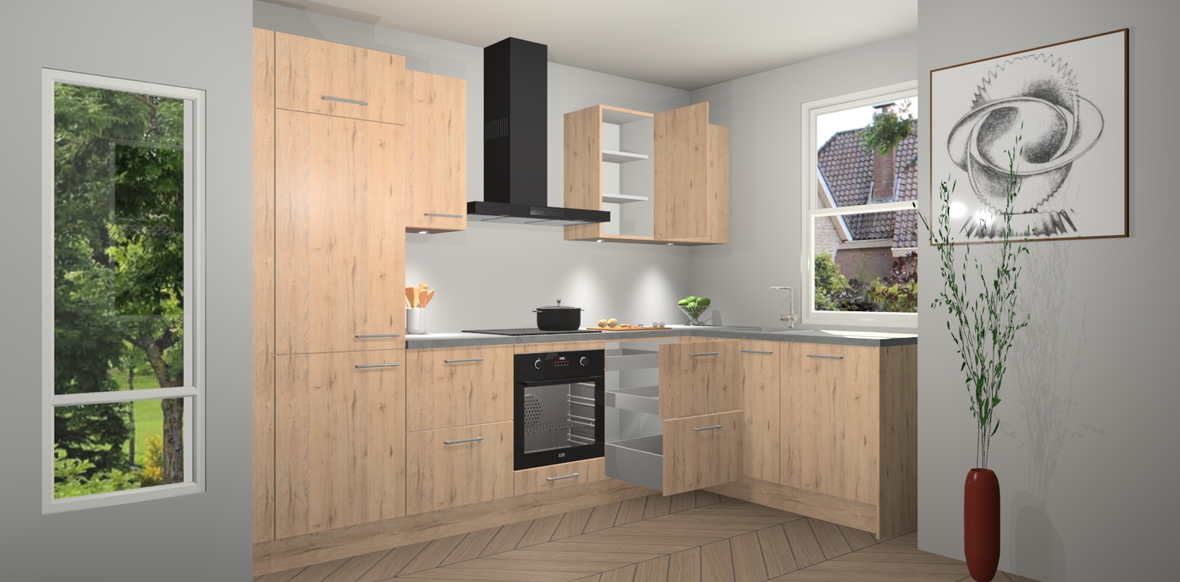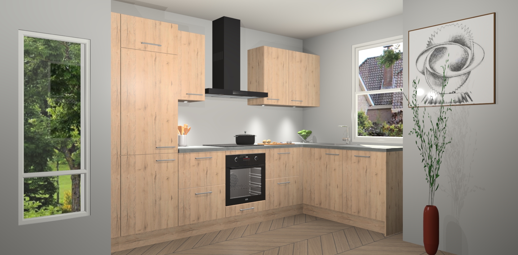 De Madera Natuur keuken Geneve is uitgerust met 5 inbouwapparaten - een oven, inductiekookplaat, afzuigkap, vaatwasser en koelkast - voor al uw kook- en bewaarbehoeftes. U kunt deze apparaten desgewenst eenvoudig upgraden naar AEG of de oven omruilen voor een combimagnetron na het plaatsen van uw bestelling. En met de soft close deuren, voldoende opbergruimte en kasten die voorgemonteerd worden geleverd, bent u in een mum van tijd klaar om heerlijke maaltijden te bereiden!