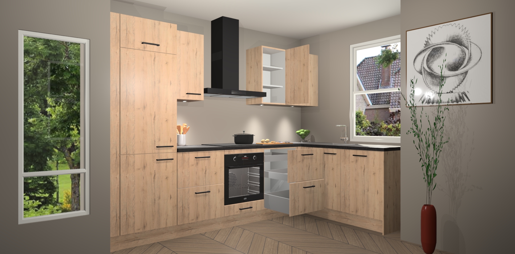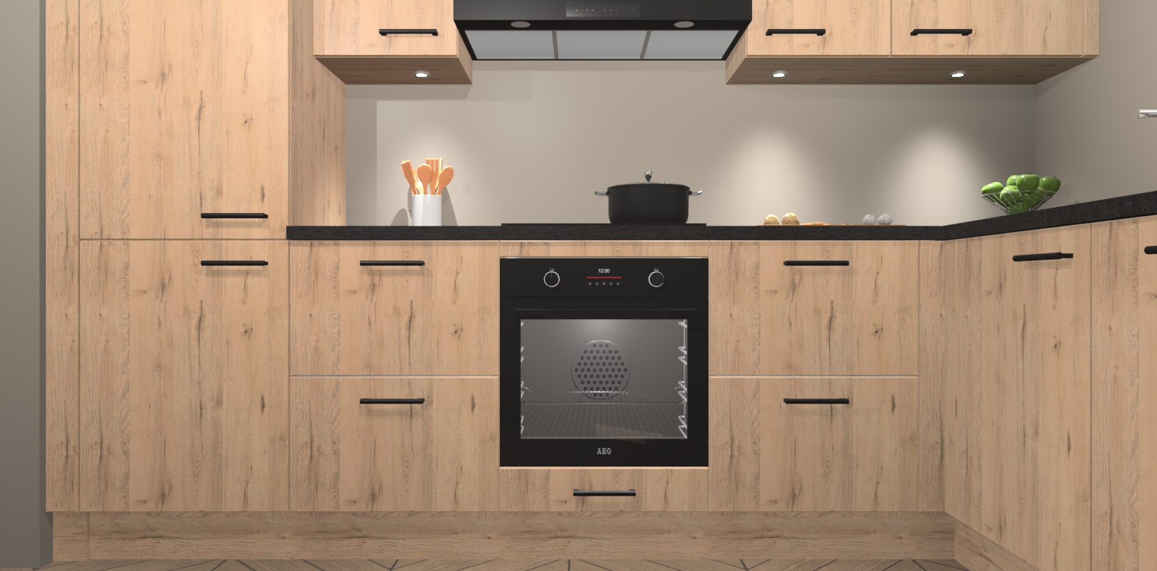 De Madera Natuur keuken Geneve is uitgerust met 5 inbouwapparaten - een oven, inductiekookplaat, afzuigkap, vaatwasser en koelkast - voor al uw kook- en bewaarbehoeftes. U kunt deze apparaten desgewenst eenvoudig upgraden naar AEG of de oven omruilen voor een combimagnetron na het plaatsen van uw bestelling. En met de soft close deuren, voldoende opbergruimte en kasten die voorgemonteerd worden geleverd, bent u in een mum van tijd klaar om heerlijke maaltijden te bereiden!